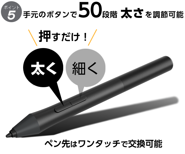 ・専用アプリからだけでなく、手元でも線の太さを調整出来ます。
