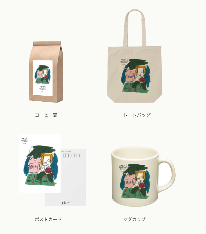 今回のクラウドファンディングでは、3人のロースターのコーヒー豆に加え、COFFEE CITY FESTIVALのメインビジュアルを担当したLee Izumidaのイラスト付きのノベルティとコーヒー豆がセットになったものをご用意させていただきました。詳細はリターン商品のページよりご確認ください。
