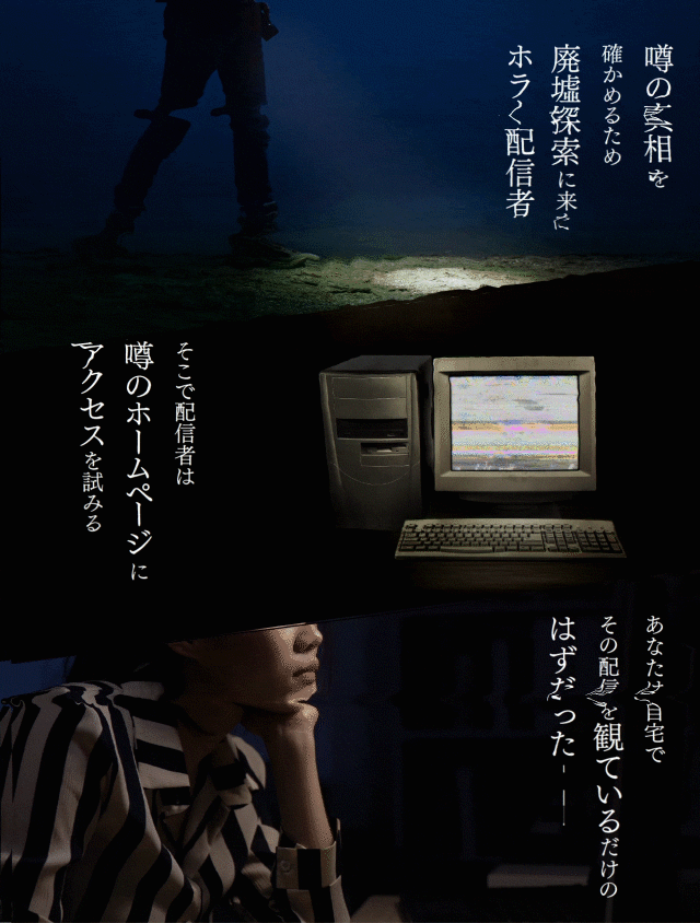 そんな噂の真相を確かめるべく、とあるホラー実況者が、事件の舞台となった廃墟現場でホームページにアクセスしようと試みる。