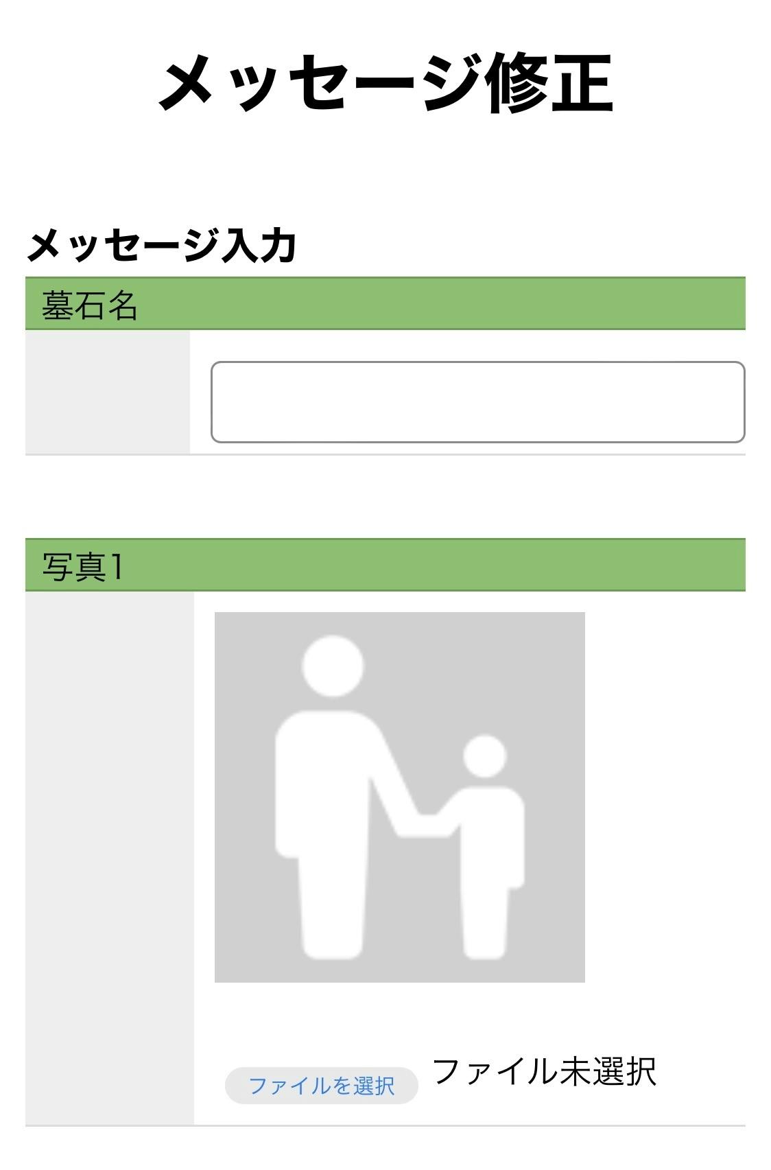 お墓のQRコードを読み取り故人の写真を見てくれた人に表示されるメッセージを登録。