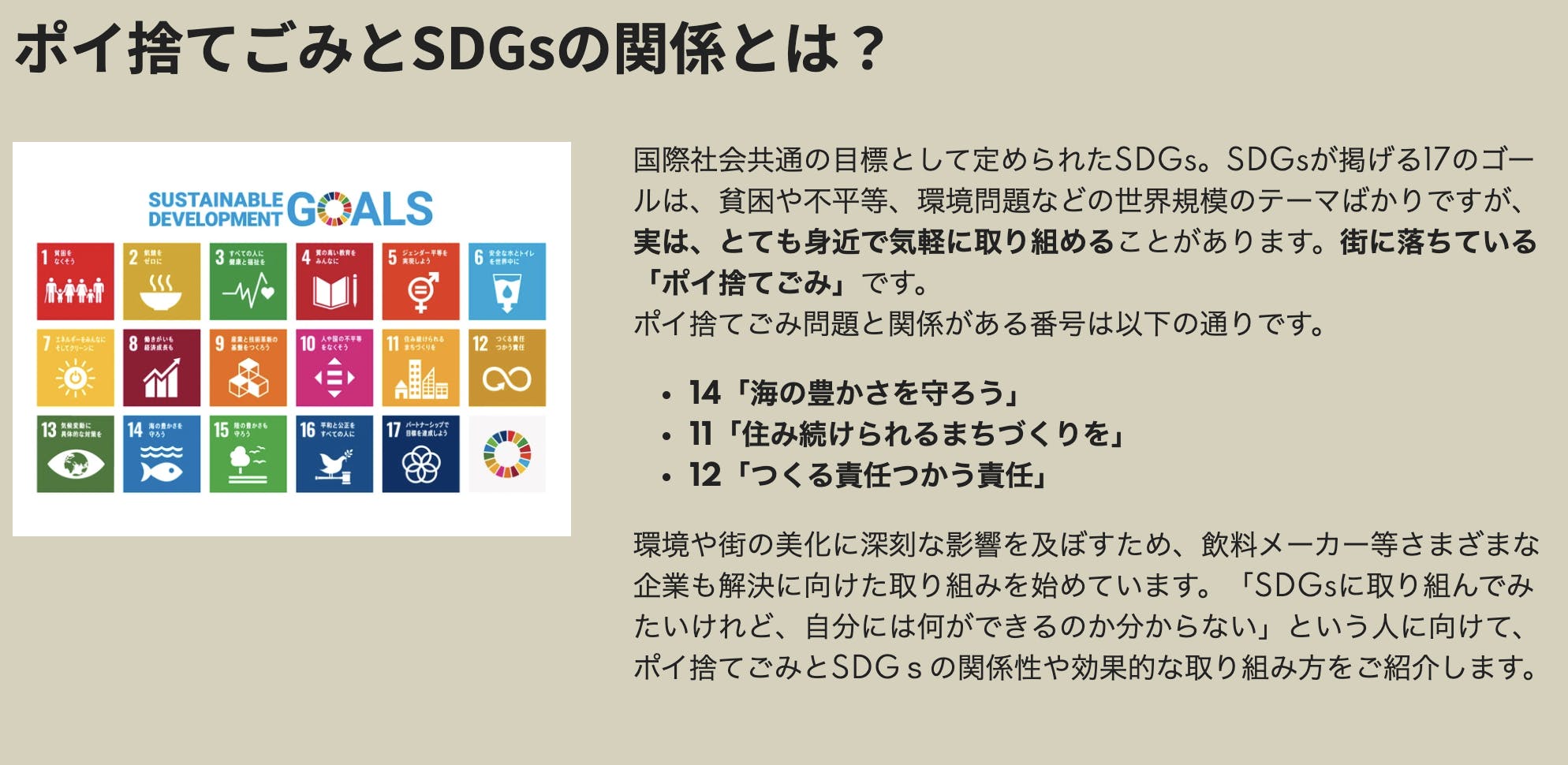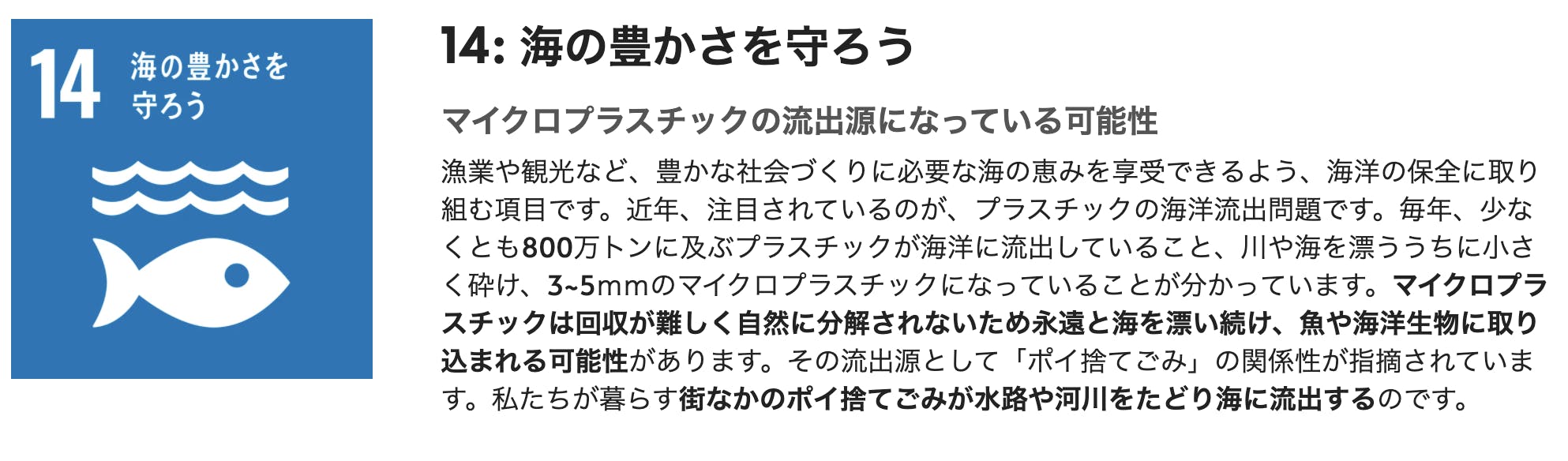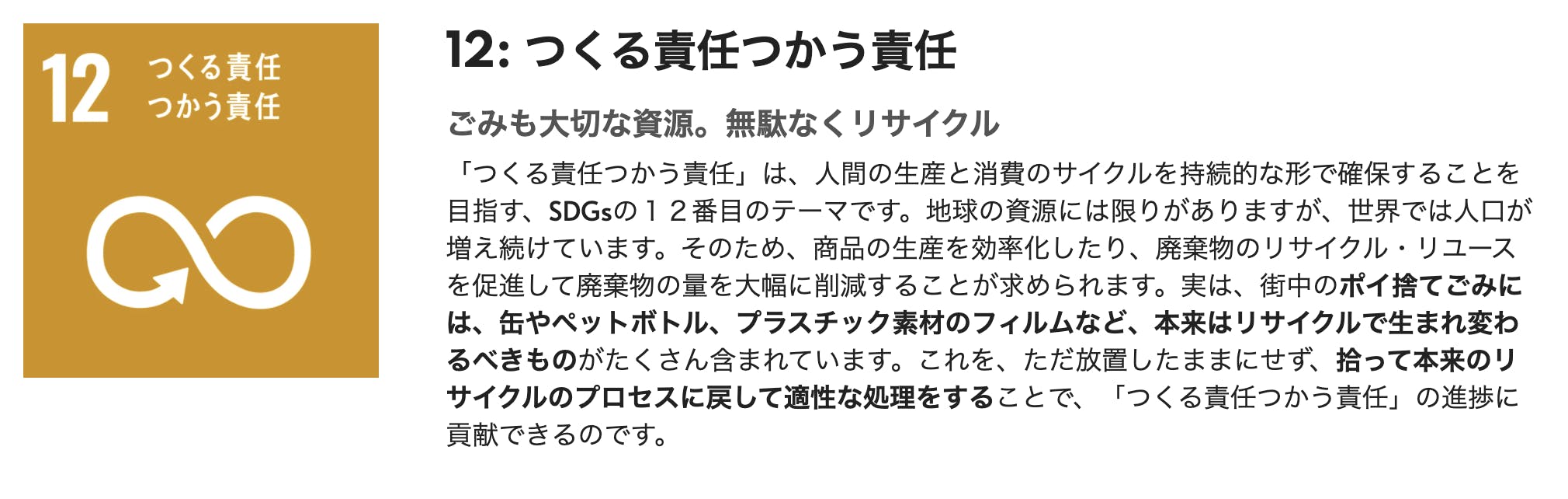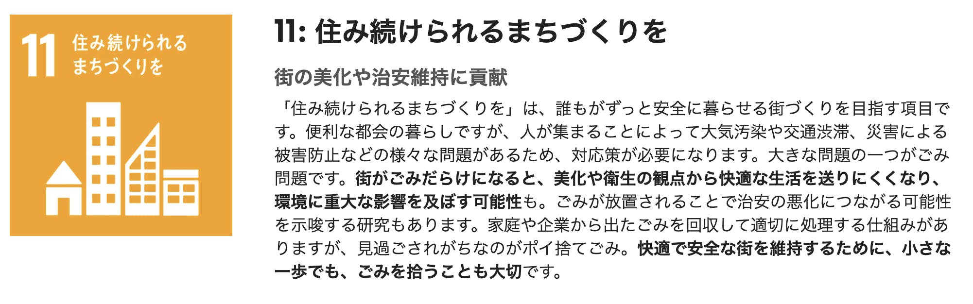 国際社会共通の目標として定められたSDGs。SDGsが掲げる17のゴールは、貧困や不平等、環境問題などの世界規模のテーマばかりですが、実は、とても身近で気軽に取り組めることがあります。街に落ちている「ポイ捨てごみ」です。