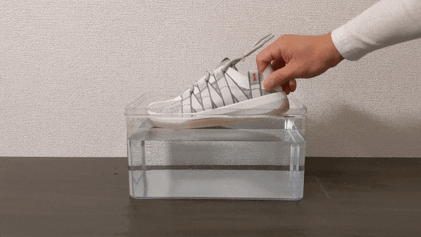水面にも浮かぶ軽さ!重さはわずか300グラム!(りんご1個分)まるで雲の上を歩いているような軽い履き心地です!足や膝に優しい軽さで体の負担を軽減します。トレーニングにもウォーキングにもぴったりな超軽量スニーカーです。