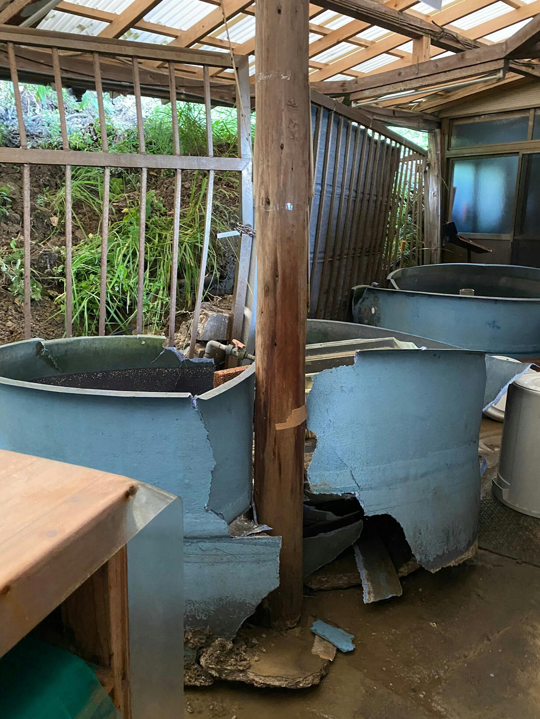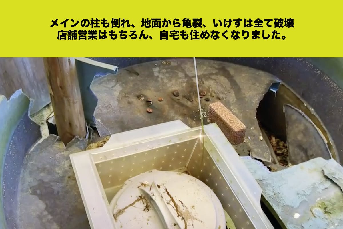 店舗の地中に埋まる、壊れたいけす用のポンプなどの設備などの被害。