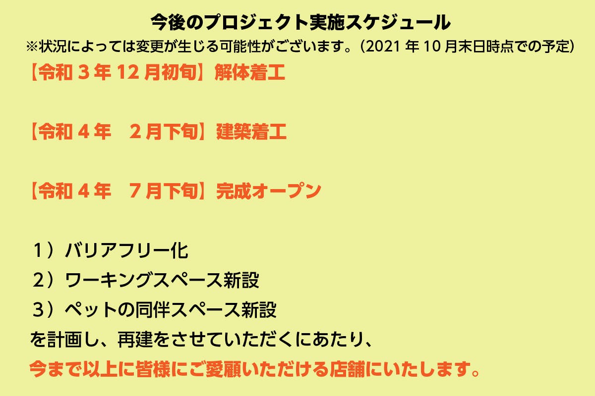 また、再建のためのスケジュールは現時点では下記を予定しております。