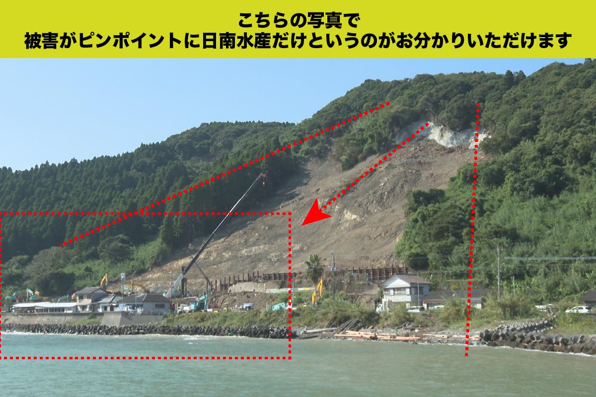 しかも、隣接する他の店舗や住宅がなく、ピンポイントで日南水産とご自宅が甚大な被害を受けました。