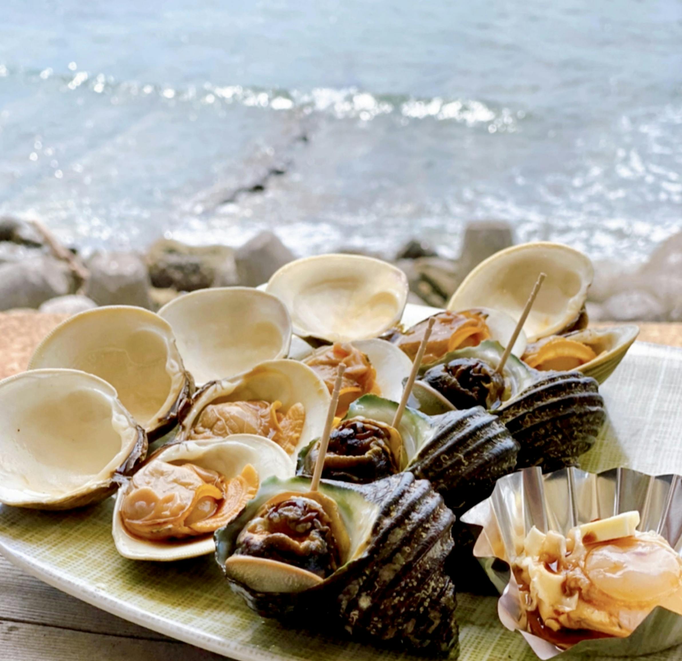 海を見ながら美味しい伊勢海老のお刺身や炭火焼きにする貝などを食べることができ、