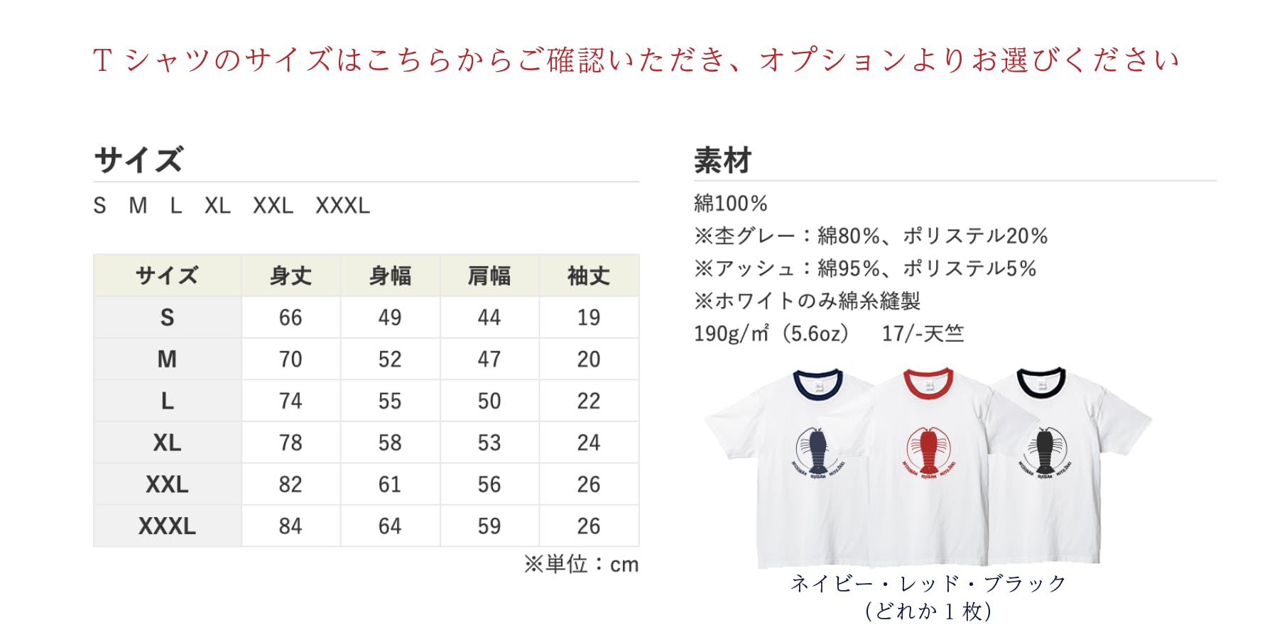 先に、伊勢海老のお味噌汁、海鮮丼、貝焼きセットのイメージ写真と、Tシャツのサイズご案内を掲載させていただき、その他の商品セットについて金額ごとに掲載をさせていただきます。