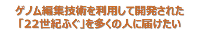 それに比べて、ゲノム編集は、どのような働きを持つ遺伝子がどう変化したか、変化の過程が明確になるため安全です。実際、狙った遺伝子以外の遺伝子に変化(オフターゲット変異) がないことを確認しております。自然界でも起こり得る品種改良なので、安全性の面でも問題ありません。