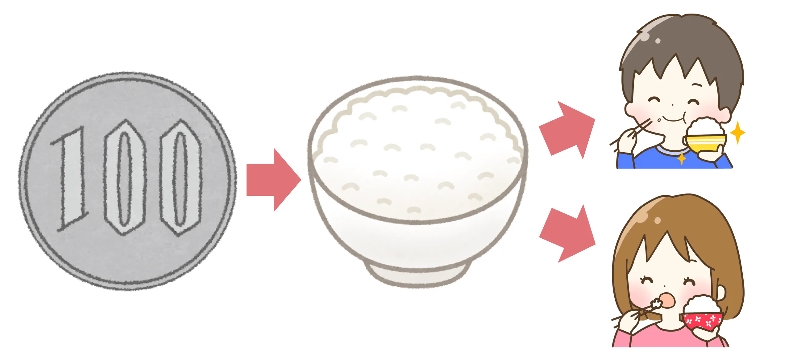 皆さまからいただいた支援金100円につき、ごはん茶碗1杯の新米が支援されます。