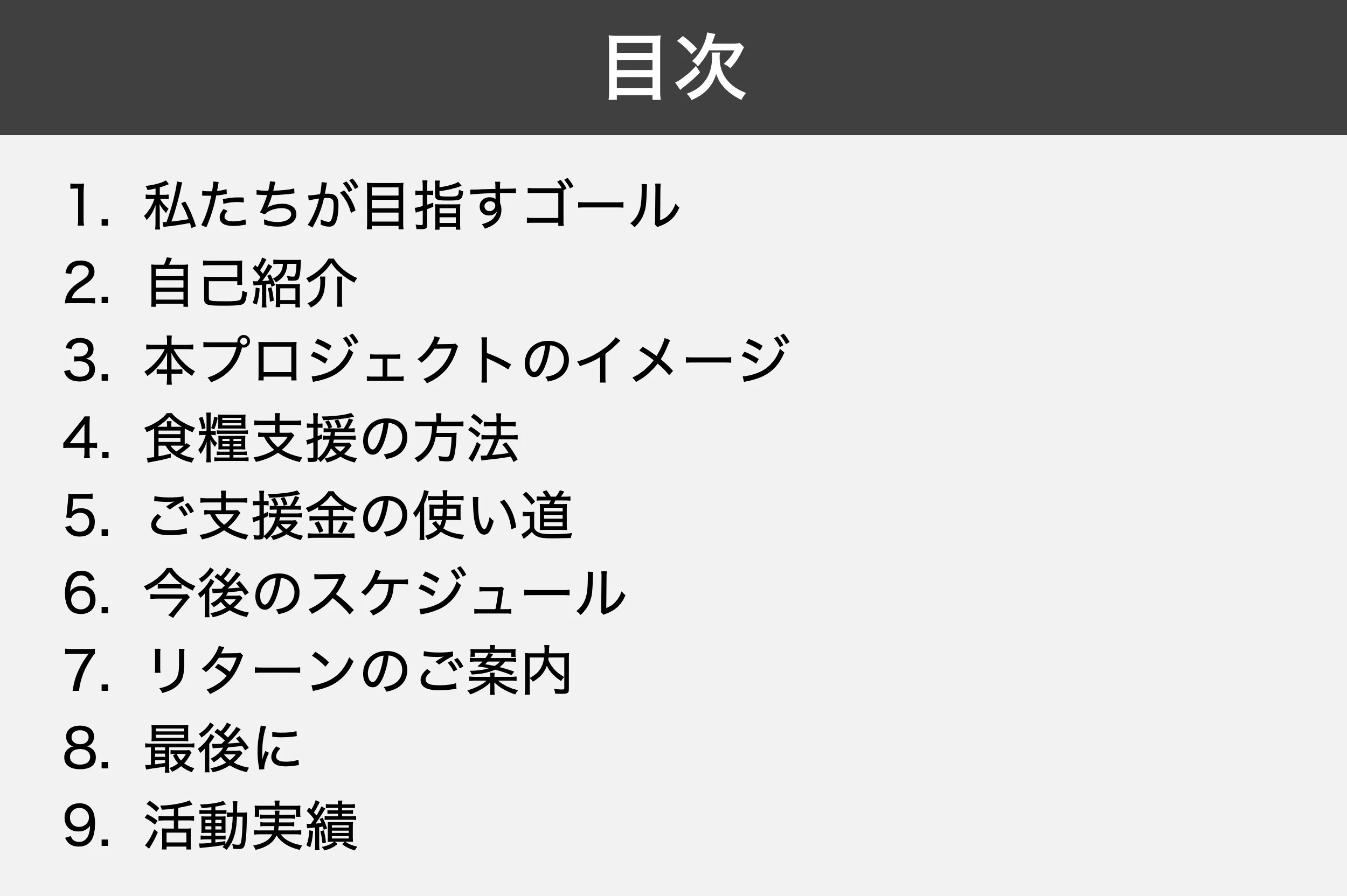 皆さんからのご支援金は全て、この目標を達成するため充てさせていただきます。