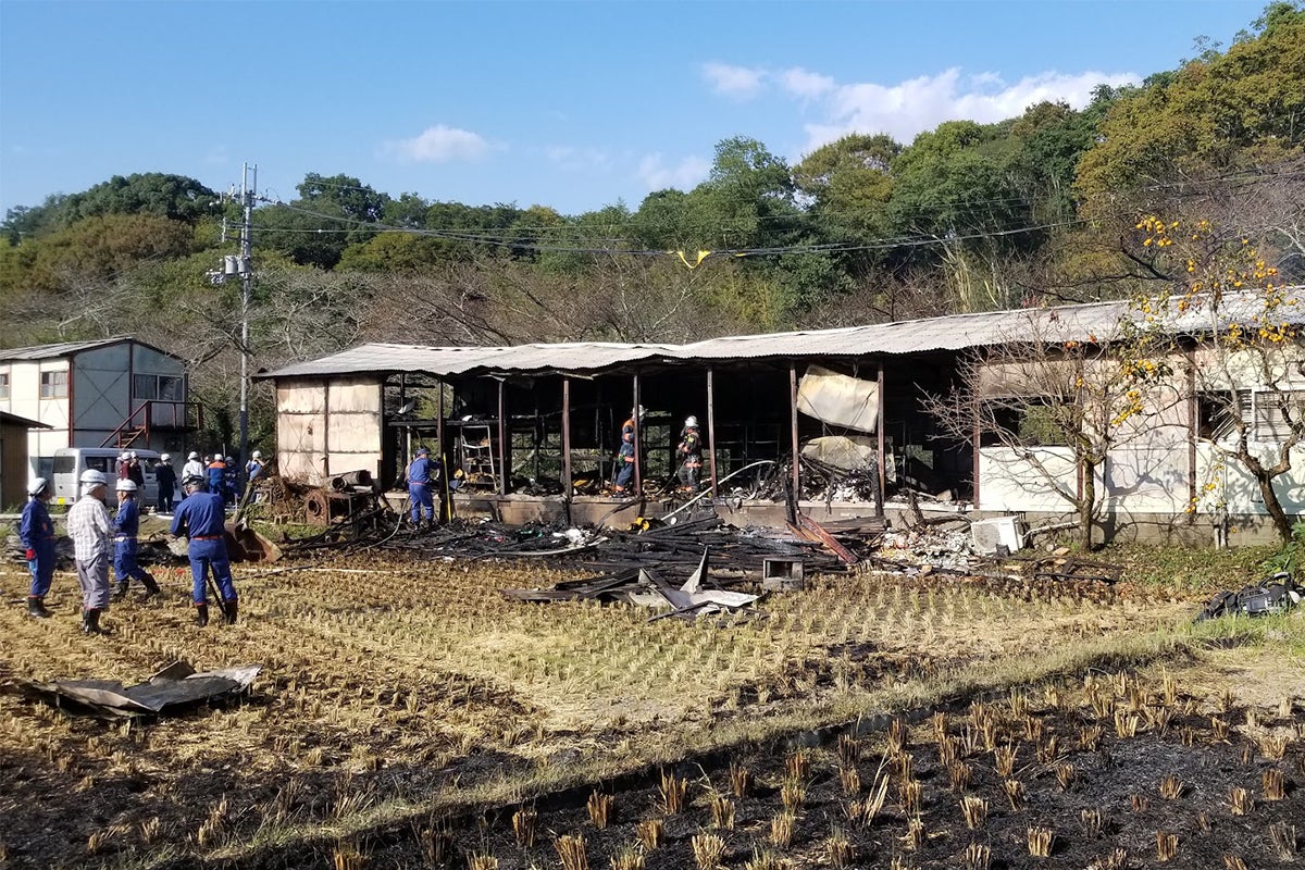 4代目後継ぎとして代表に就任してから約1か月後の2021年10月9日、会社の周辺で行われていた稲刈り後のワラ焼きの火が燃え移り、事務所、作業場、倉庫が全焼しました。