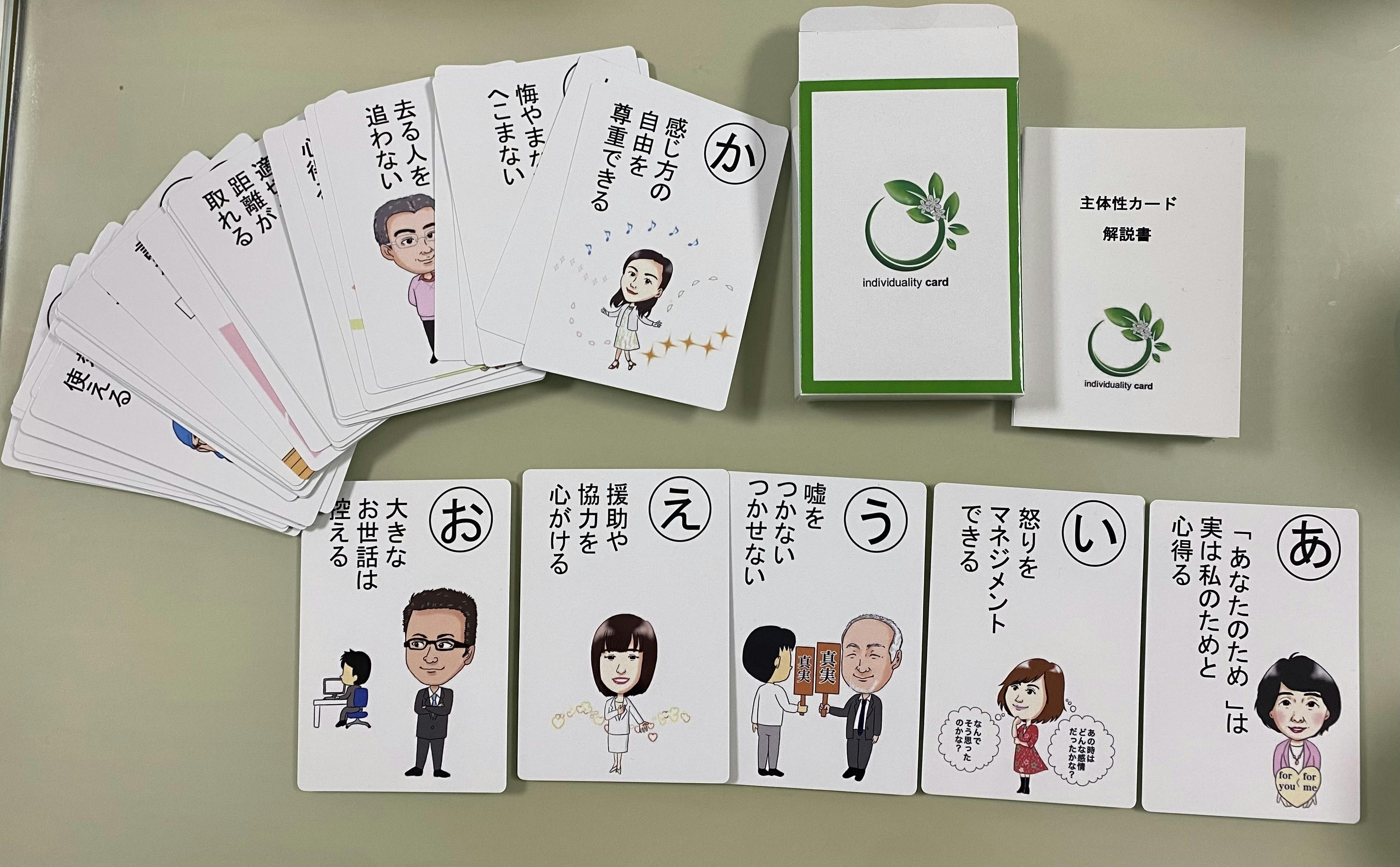また、これまで様々な講座を展開していく中で、どうしても主体性については頭で理解するレベルで終わってしまう人が多いことも気になっていました。頭でなく心で分かって実践に繋がる学びは、ワーク中心がよく、テキストなどの知識や情報は少なく、遊び心があるものを作りたいと考え、「主体性カード」作成を手がけました。