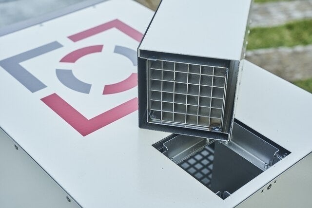煙突の最下部には車の排気管にも使われる”触媒”を装備。
