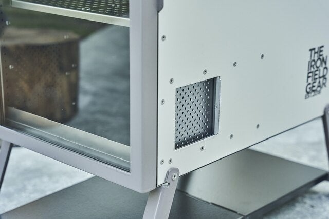 本体側面には火力調整窓があり、開閉することで炎の勢いを調整できます。