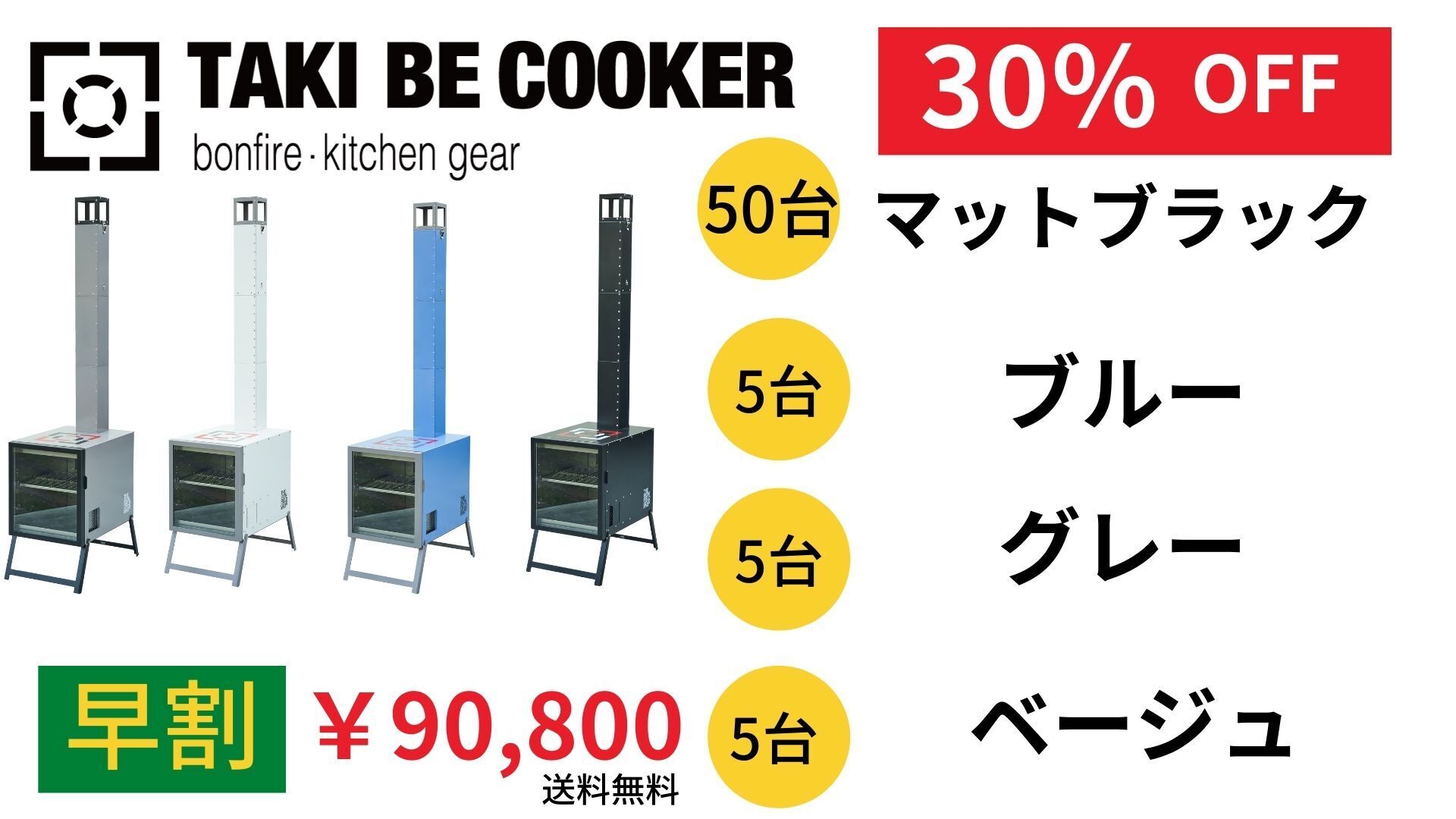 ・TAKI BE COOKERセット ※各色数量に限りがありますのでご注意ください。