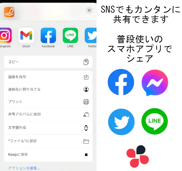 メッセージ添付やSNSシェアも簡単!!