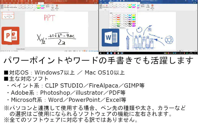 「手書き対応」するPCソフトに書き込めます。