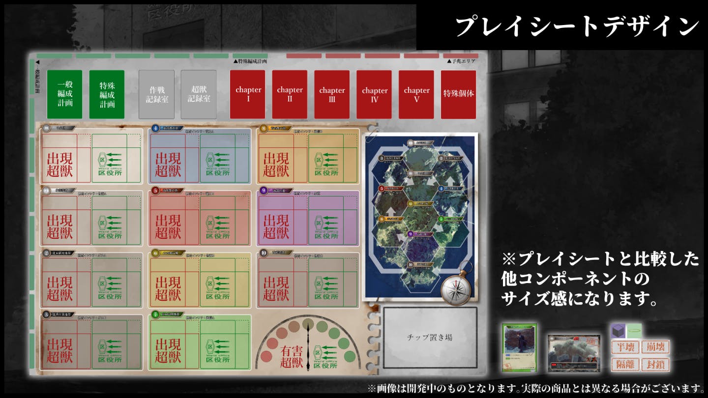 プレイ体験としてはワーカープレイスメントに近く毎ターン発生する超獣(課題)に対して、必要な人員を適切に配備できるか、というゲームになります。