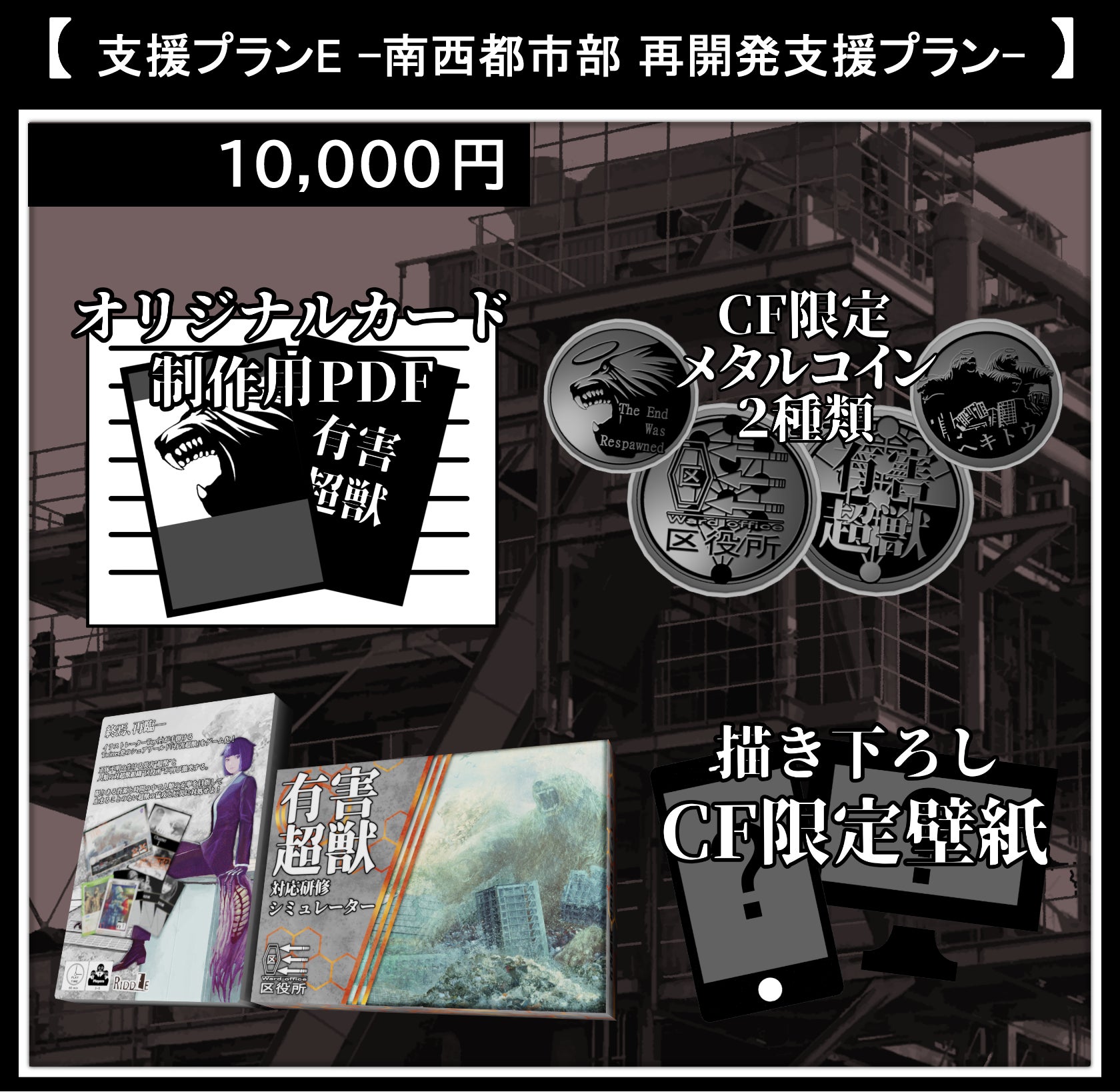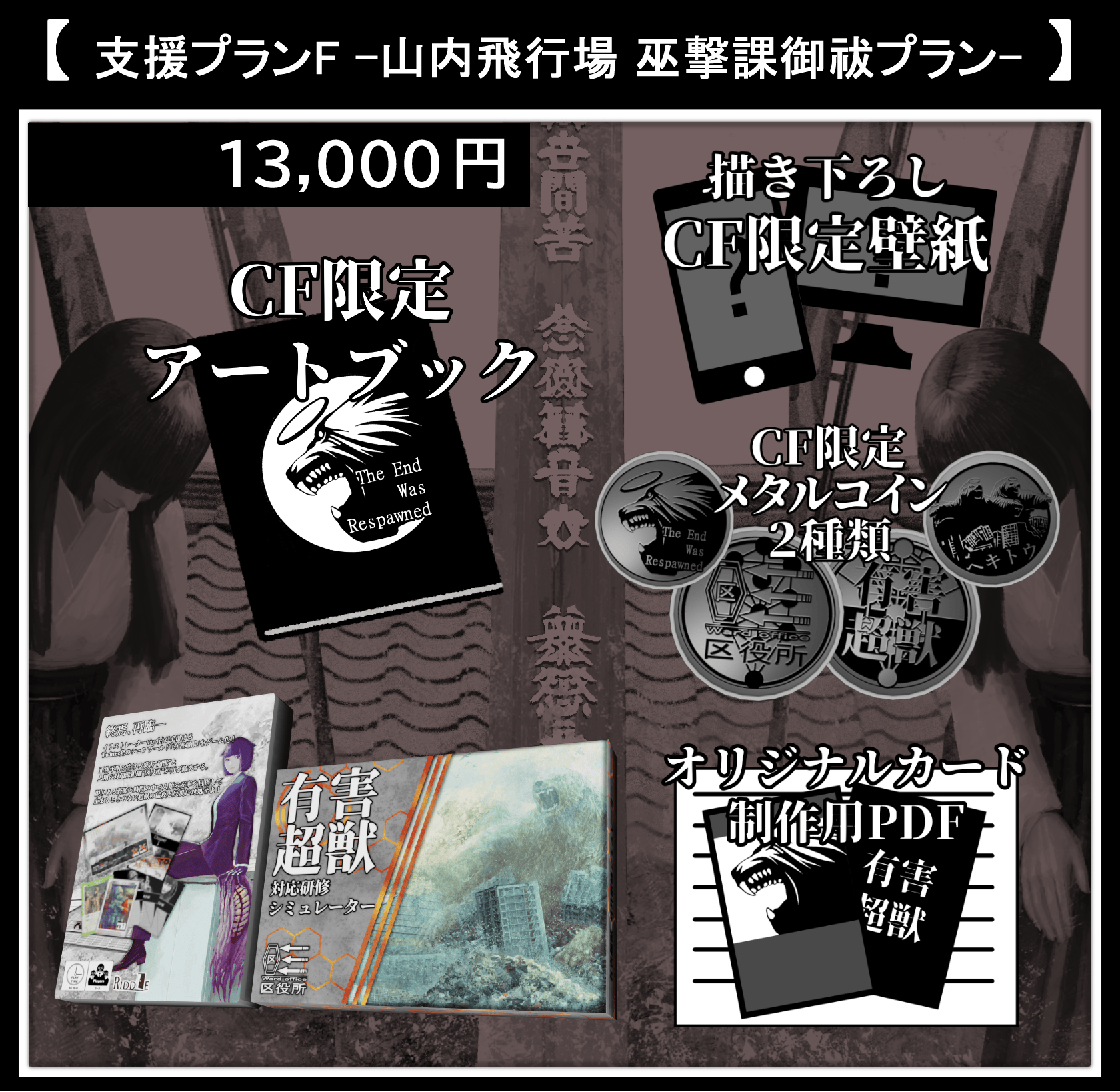 描き下ろし限定壁紙に本クラウドファンディングでのみ手に入るオリジナルグッズとして特別デザインのメタルコインを1つ加えたプランです。