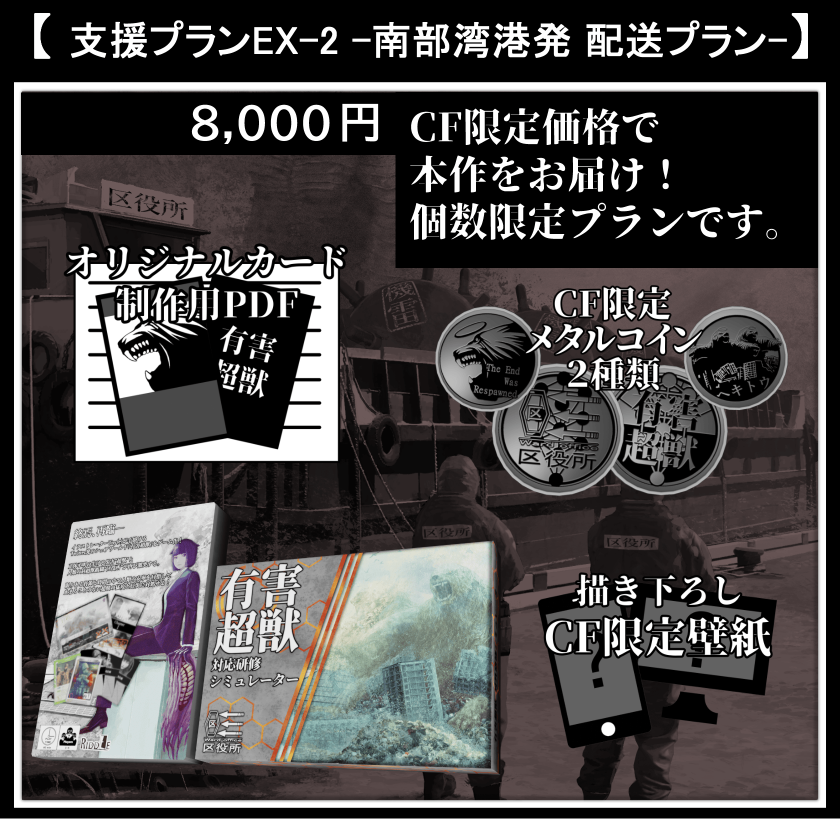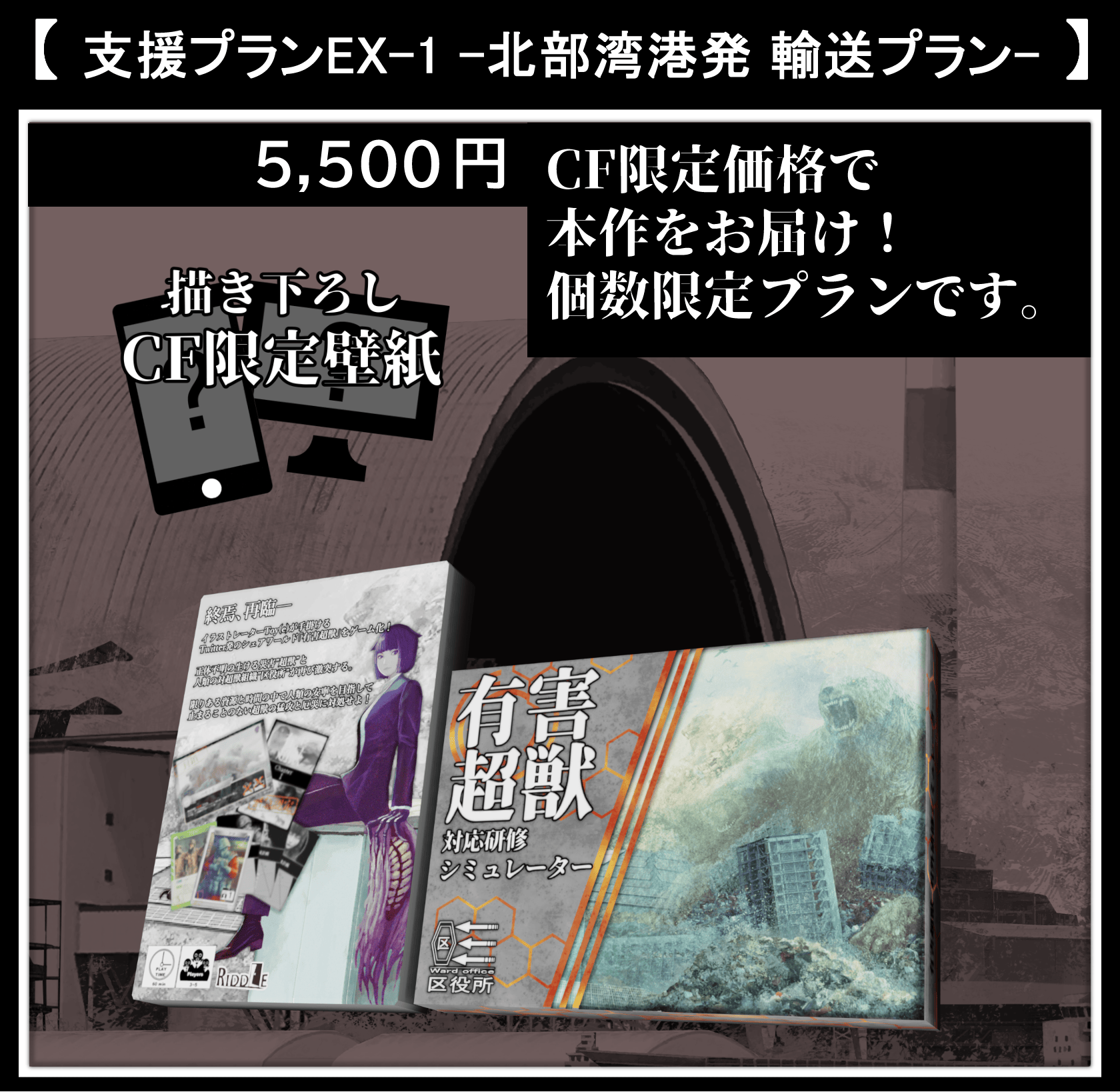 残り1週間ではありますが、引き続き本プロジェクトに関してご支援、拡散等々ご協力いただけますと幸いです。ゲームの拡張等はありませんが、より早くに、より多くの方に有害超獣の持つ魅力と本作とをお届けしたいと思っておりますので何卒よろしくお願いいたします。