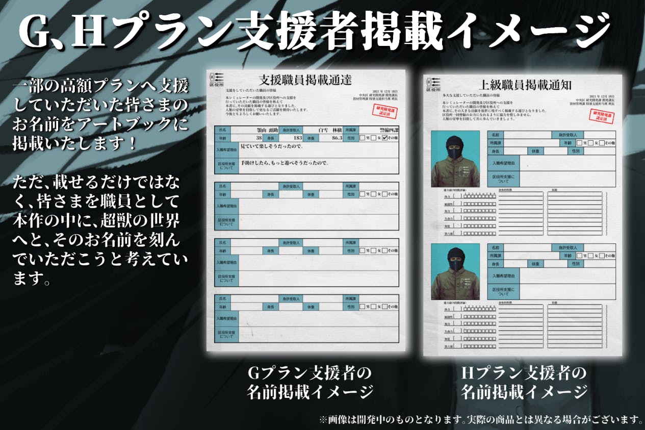 ※支援者様の掲載ついての情報記入についても同様に活動報告にてアナウンスを実施予定です。