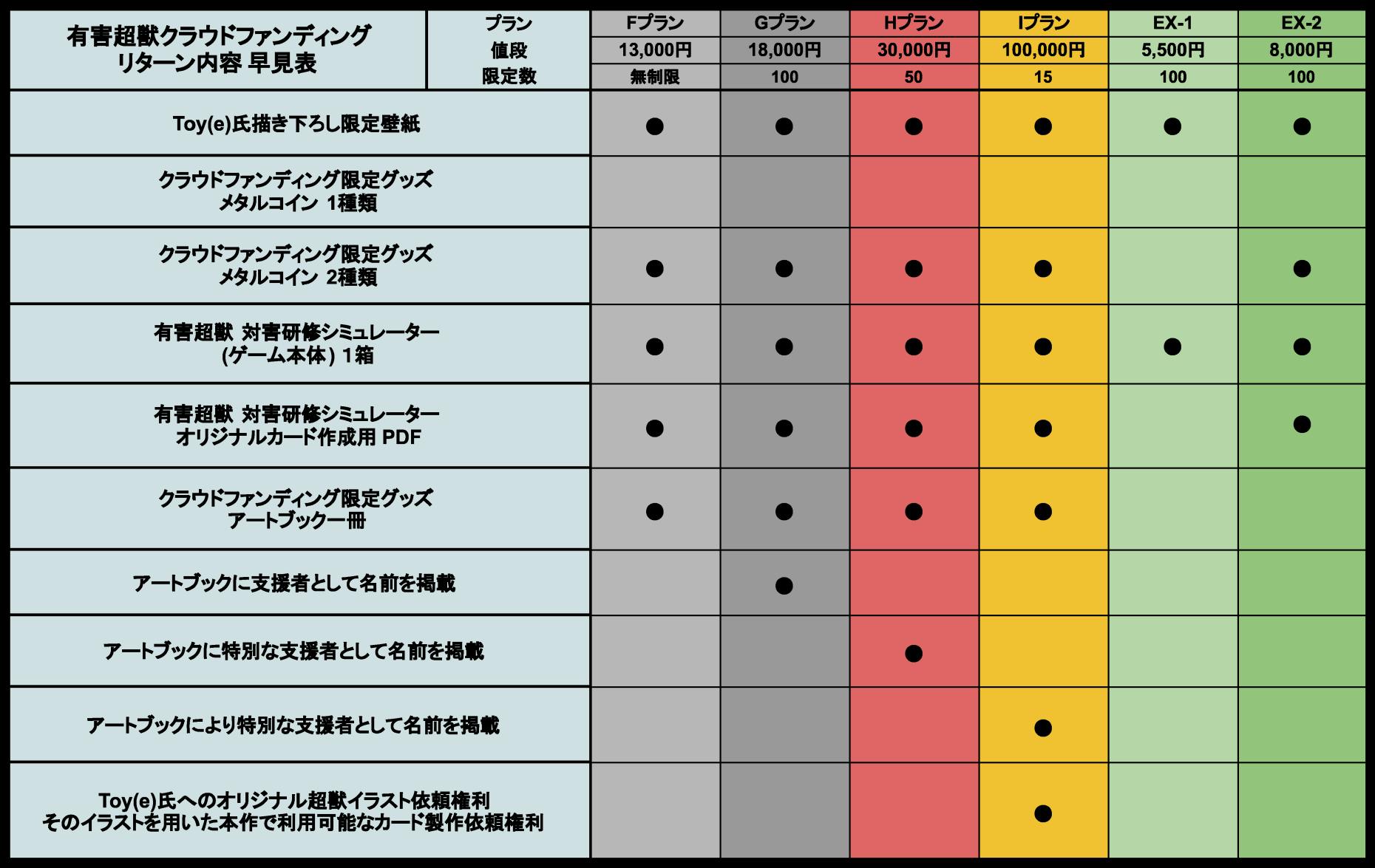 最後に、以上のリターン内容をまとめた早見表を提示させていただきます。