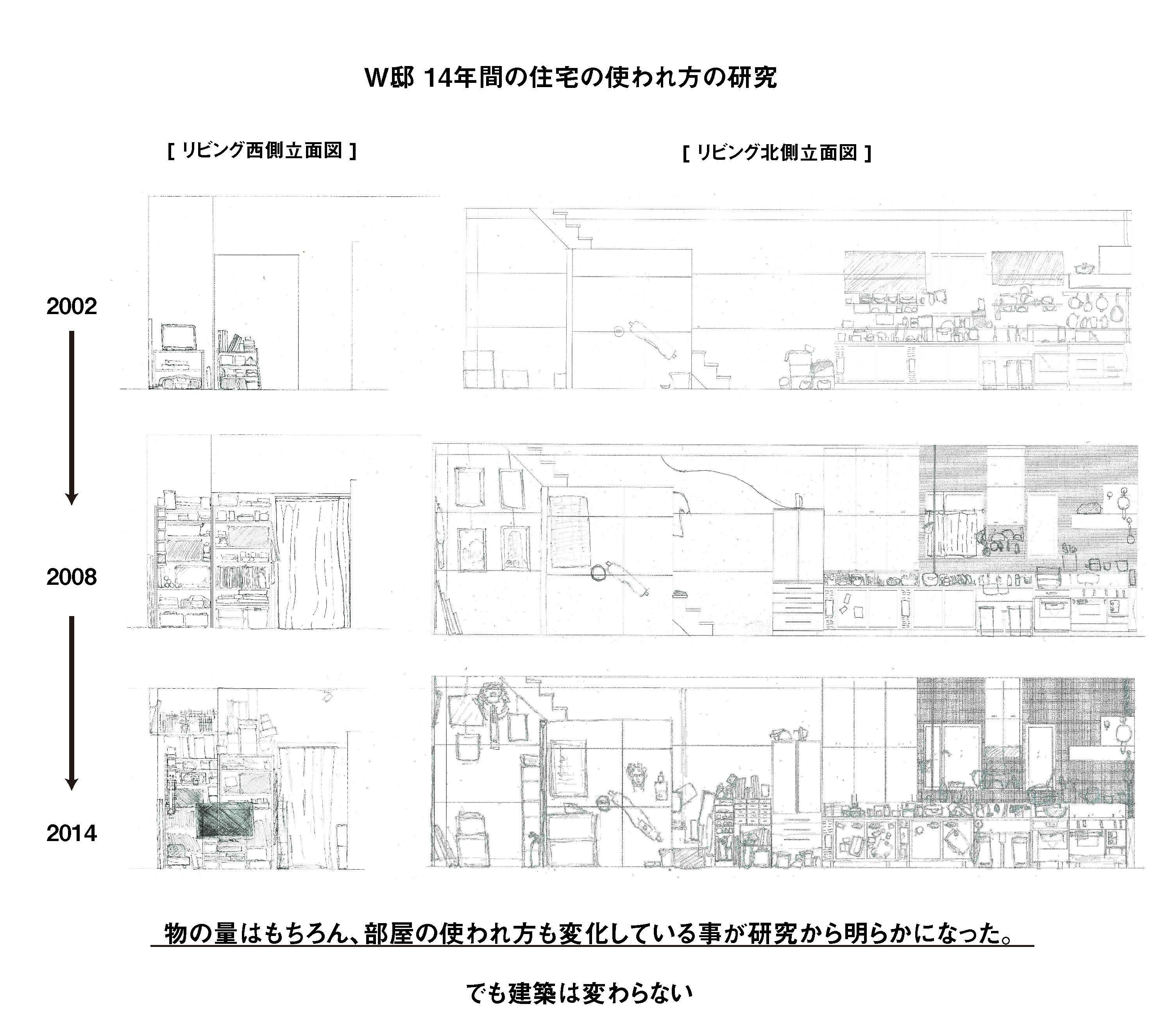 気になっていたのは実際に建築家の住宅の中で時間軸までを含める人が少なく、100年存在する物なのに「今」のみを語る建築家に違和感を感じるようになりました。そこで推測の通り「住人の生活は変わるのに建築は変われない」という問題が起きているのか調べてみました。