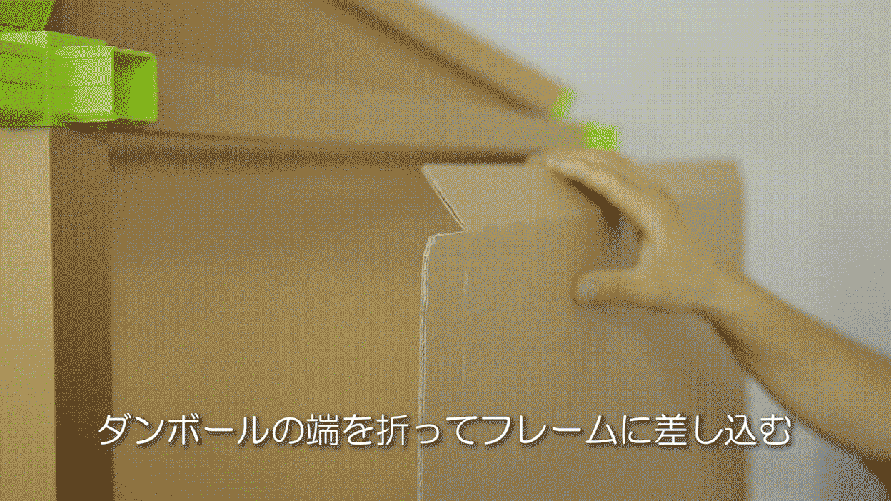 段ボールの一部を外して布にしたり、壁紙を貼ったり、色を塗ったり、カフェの特別なスペースとして使用したり、使用方法は様々です。作って終わりではなく、作った後に自分の家にしていく面白さがこの製品の醍醐味です!