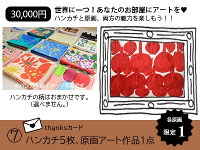 今回のクラウドファンディングプロジェクト終了後、2022年春から夏にかけて、ハンカチ原画展覧会の開催を予定しています。このリターンでご購入いただく作品も展覧会で展示するため、展覧会終了後のお届けとさせていただきます。