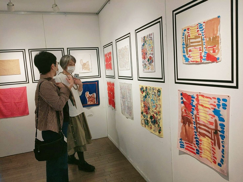 2022/05/09 17:26みなさん、こんばんは。ダブディビ・デザインの柊伸江です。ダブディビ・デザインの初クラウドファンディング、【毎日が楽しくなるポップでキュートなハンカチ! アートとデザインで暮らしに彩りを】のページをご覧いただき、ありがとうございます。5月のGWも終わり、日常が戻ってまいりました。少し時間が経ってしまいましたが、先月、千葉で行いましたハンカチ原画展の様子をご紹介させていただきます。千葉でのハンカチ原画展会場は、スペースガレリアさん。千葉市美術館の目の前にあるギャラリーです。京都での原画展同様、原画は額装せず、壁に額をイメージしたラインを入れ、原画はその中に配置しました。こちらが正面の壁。こちらは左側の壁面。こちらが一番入り口側の壁面です。京都の会場よりもコンパクトな会場でしたが、アットホームな空間で作品を楽しんでいただけたのではないかと思います。また、まあるい広場さんの商品販売コーナーも設けました。草木染のストールを気に入ってくださったお客様も多く、商品もよく売れました♪そして、まあるい広場さんからもたくさんの方が見に来てくださりました。こちらは、【あじさい】の作者:西田英司さん。こちらは、【ひこうき】の作者:桝本吉隆さん。会期中の土日は、私もギャラリーに在廊し、多くの方と交流が持てました。原画を書いてくださった方やそのご家族様、また長年、まあるい広場さんをサポートしてくださっている方など、たくさんの方々がお越しくださり、賑やかな原画展になりました。本当にありがとうございました!!この原画展終了後、クラファンで原画をご購入くださった方々にも、リターン品として原画作品をお届けさせていただきました。これで、全てのリターン品のお届けが完了いたしました!昨年12月から始まったこのクラウドファンディングですが、約6か月をかけ予定していた活動を全て終え、このプロジェクトは終了させていただくことになります。本当に多くの方々のご支援とご協力に、改めて感謝申し上げます。ありがとうございました!!そしてなんと、ダブディビ・デザインは新たなクラウドファンディングプロジェクトを立ち上げます!!クラファン第一弾で完成したハンカチ、その後の活動について、また新たな挑戦を始めます。近日中に新しいクラファンページが公開されますので、是非、引き続きの応援をよろしくお願いいたします。 もっと見る
