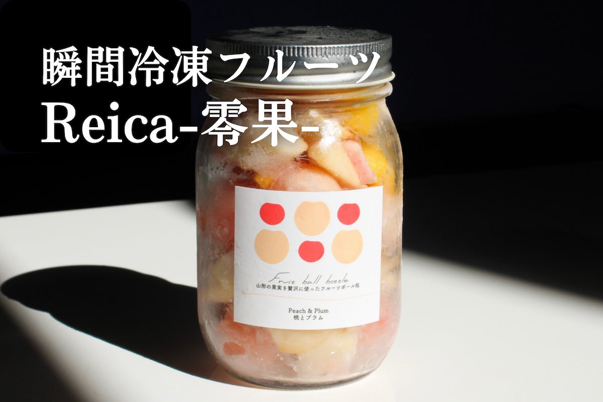 フルーツボール瓶は、山形の高級フルーツ「シャイマスカット・桃・巨峰」をReicaの技術で瞬間冷凍し、「プラム・西洋梨・ふじりんご」はボール状に冷凍加工して瓶詰めした商品です。採れたての抜群の鮮度と果実本来の贅沢な美味しさを楽しむことができます。