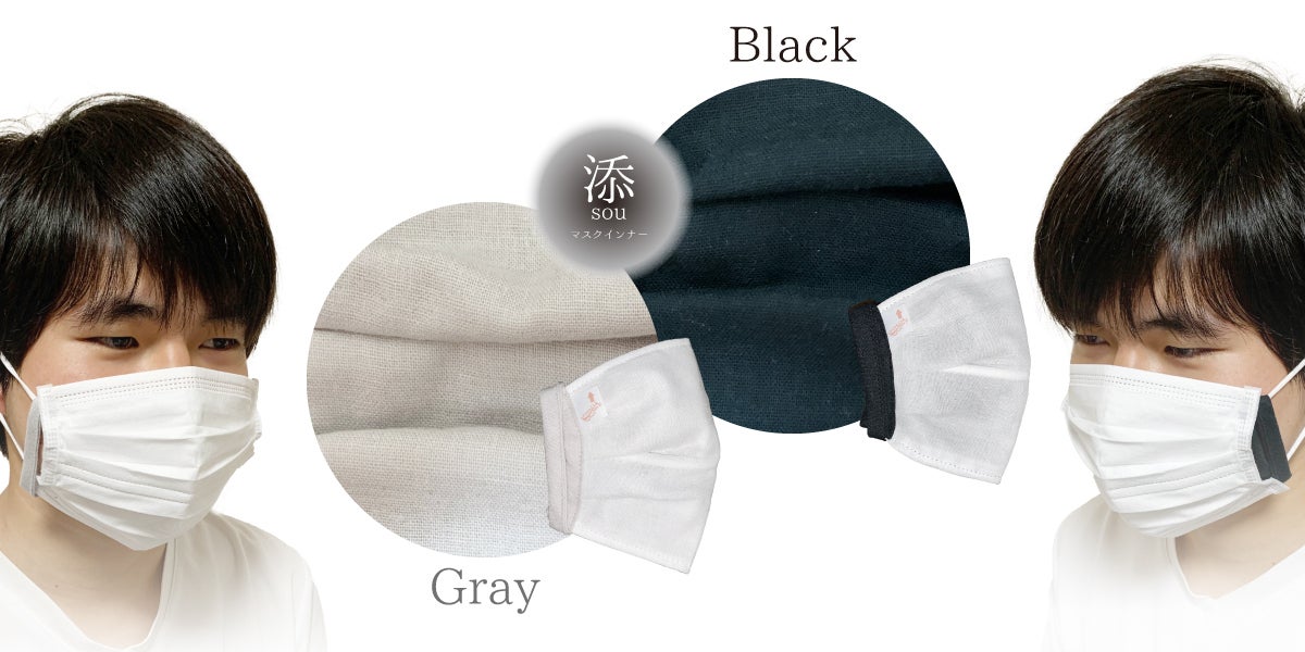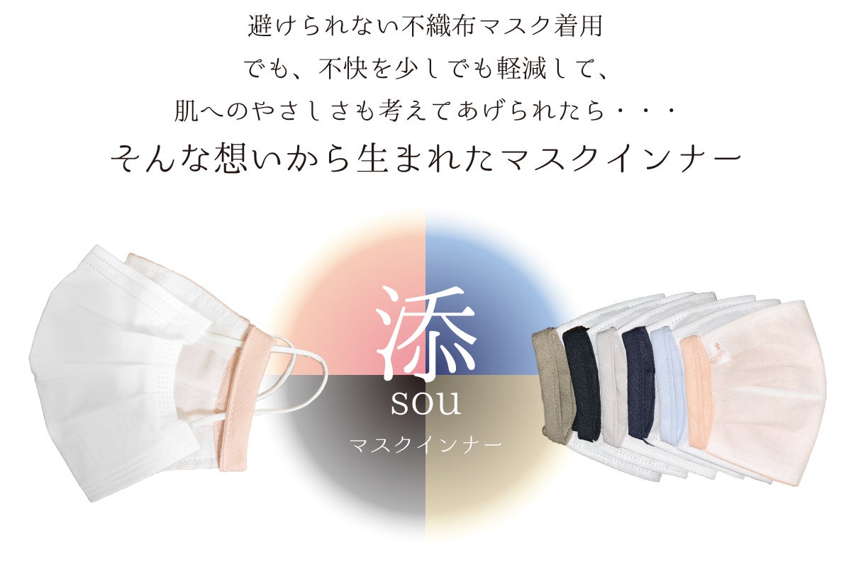 私共の会社は、創立26年、綿ガーゼなどを含む衛生材料を扱っております。昔ながらの綿ガーゼを平たんに折りたたんだだけのマスクに始まり、現在はサージカル不織布マスクの取り扱いもある中、自社のガーゼと手に入る高機能フィルタを使った着心地にこだわったオリジナルの高機能布マスクを開発。根強いリピーターを得続けていた最中、コロナ禍に突入し、マスクの供給が途絶えた際にも安定した販売をしておりました。さらに、不織布マスク推奨がうたわれてきたため、この『添~sou~』の開発に至りました。