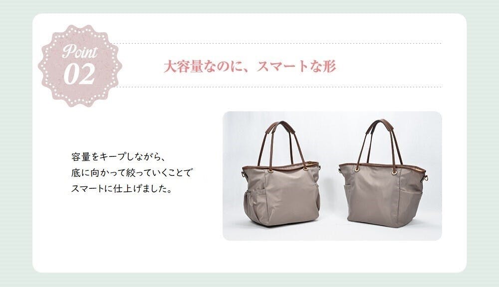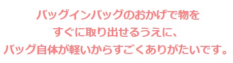 何より嬉しいのは、バッグ自体が軽いからどれだけ長い時間使ってても肩が楽なところです。