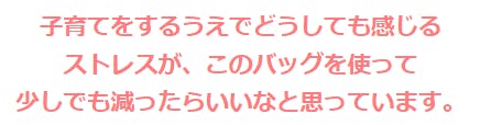 けど、そのイライラをこのバッグを使うことでちょっとでも減ってくれたら嬉しいなと思います。
