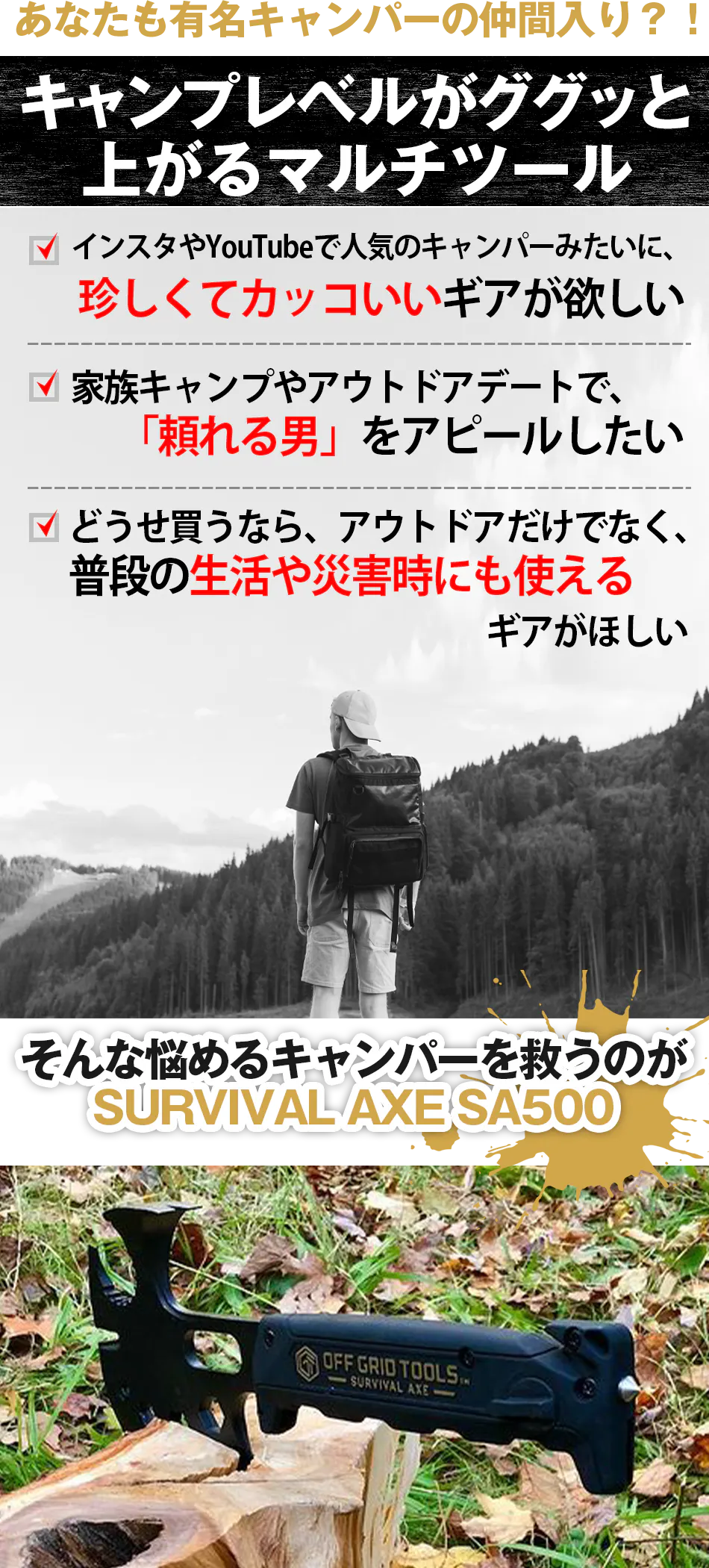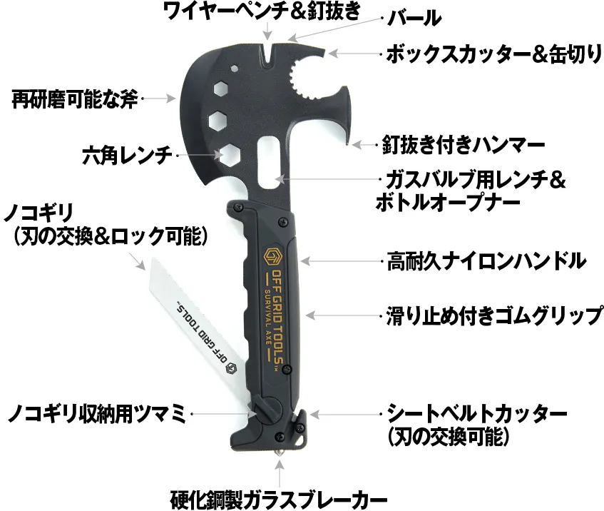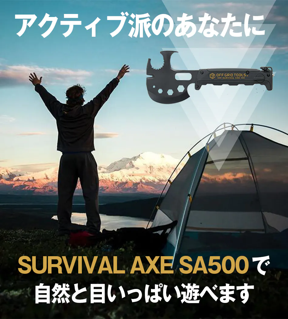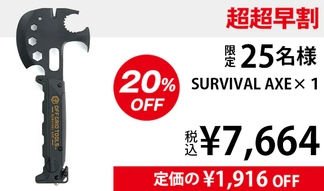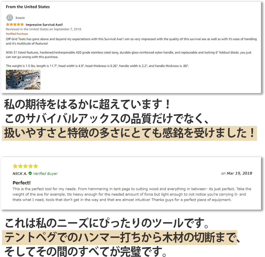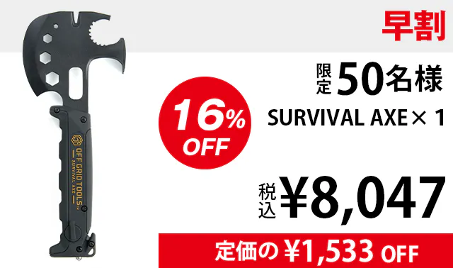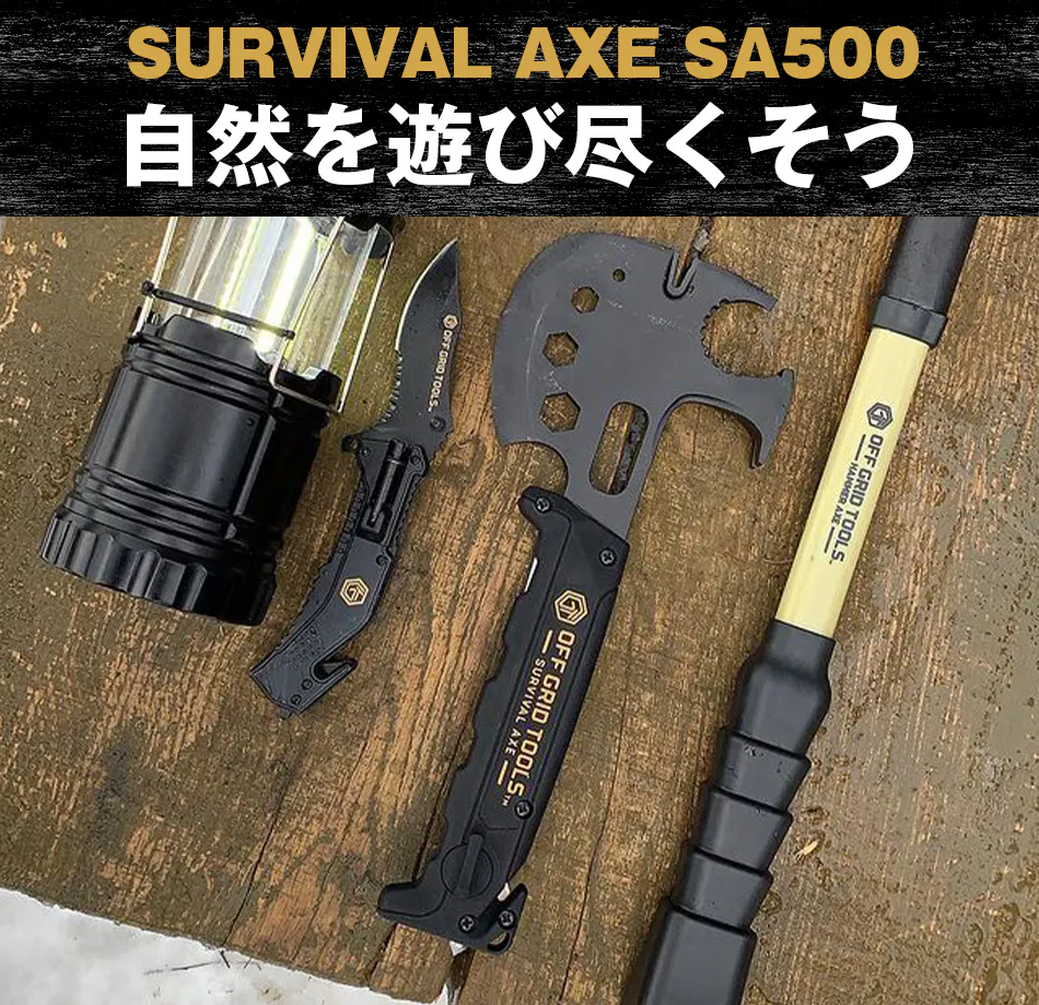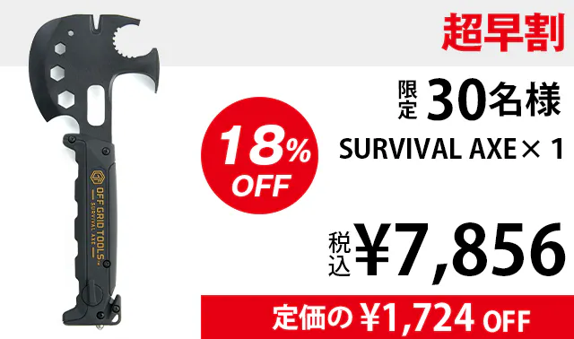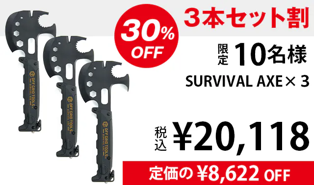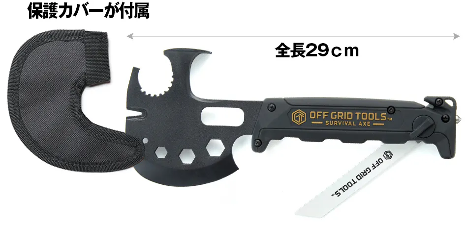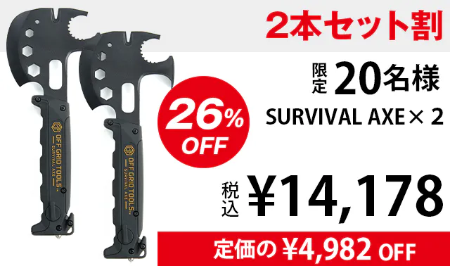 ・ サバイバルアックスを目的無く携帯していたことで銃刀法違反となった場合でも当社は責任を負いかねますので、用途に応じてご使用ください。