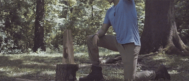・やや太い枝→肩を中心に腕を振り上げ、小斧先端の重さで小斧を振りおろします。