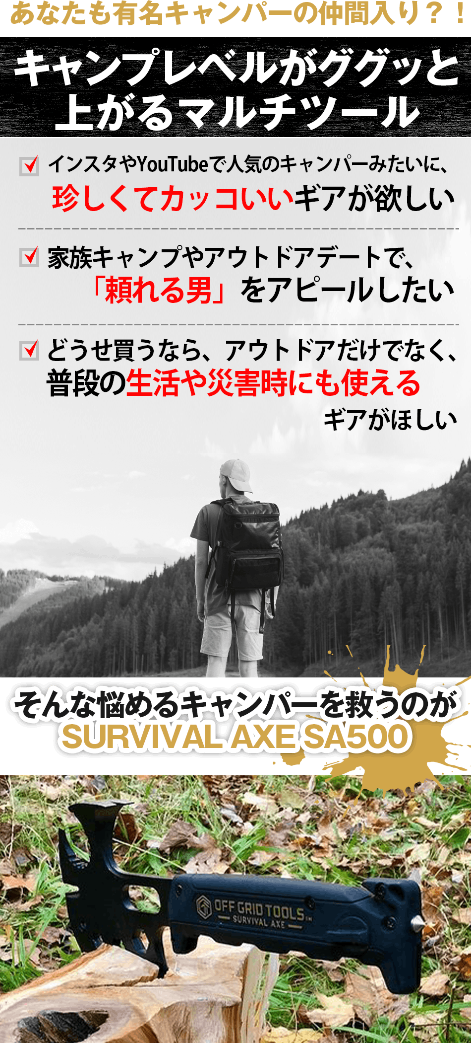 【アメリカ発】 31の特徴で野性的にキャンプを楽しむ!サバイバルアックス