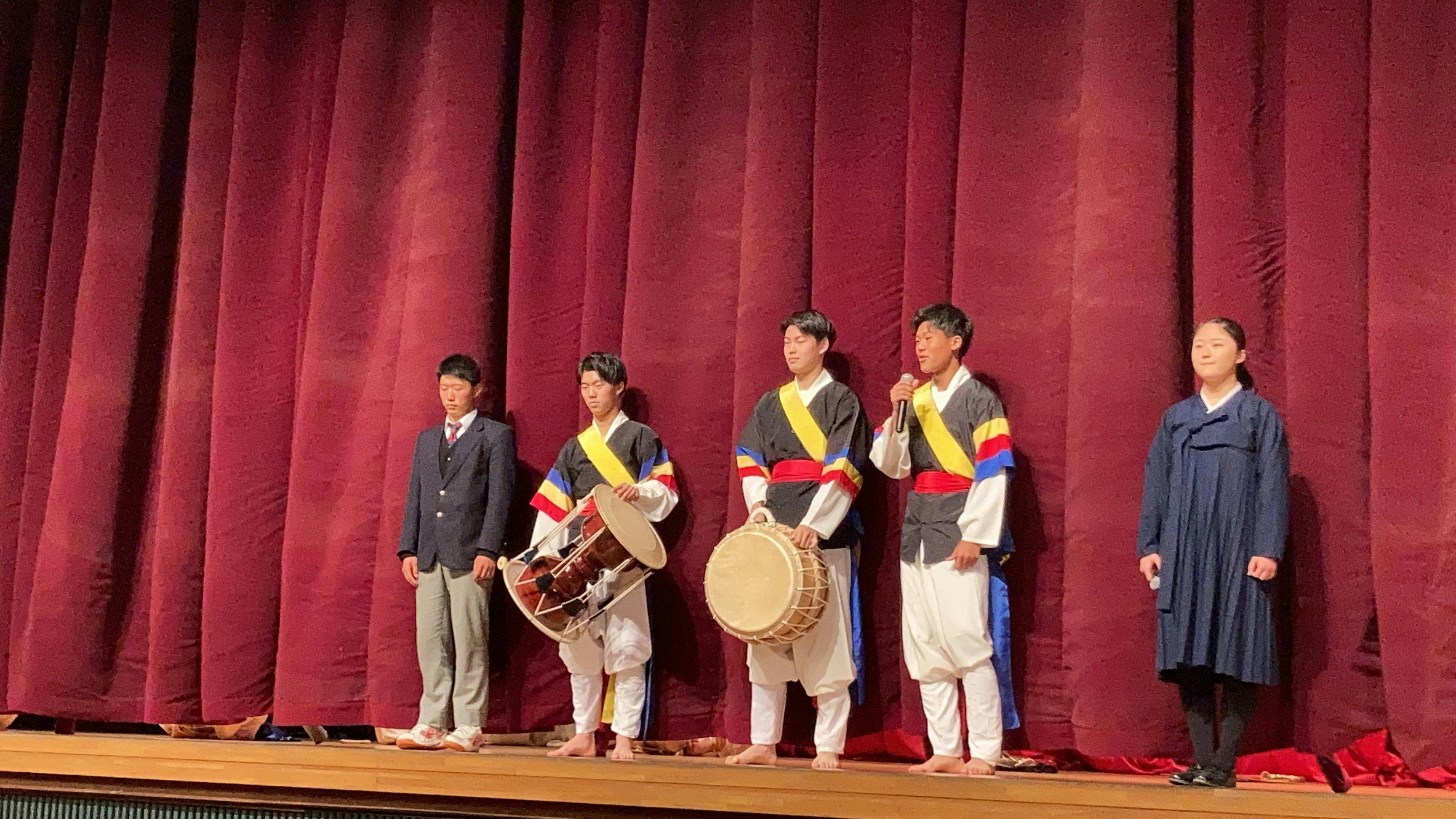 愛知朝高 中高祭にて。学生達がこれまでたくさんの方々にご支援いただき,支えられ,助けられてチャング(장구)やケンガリチェ(꽹과리채),そしてプッ(북)を新調できた事を報告。感謝を述べるとともに、その想いに応えられるよう頑張る気持ちを込めて渾身のチャンダンノリを披露しました。 もっと見る