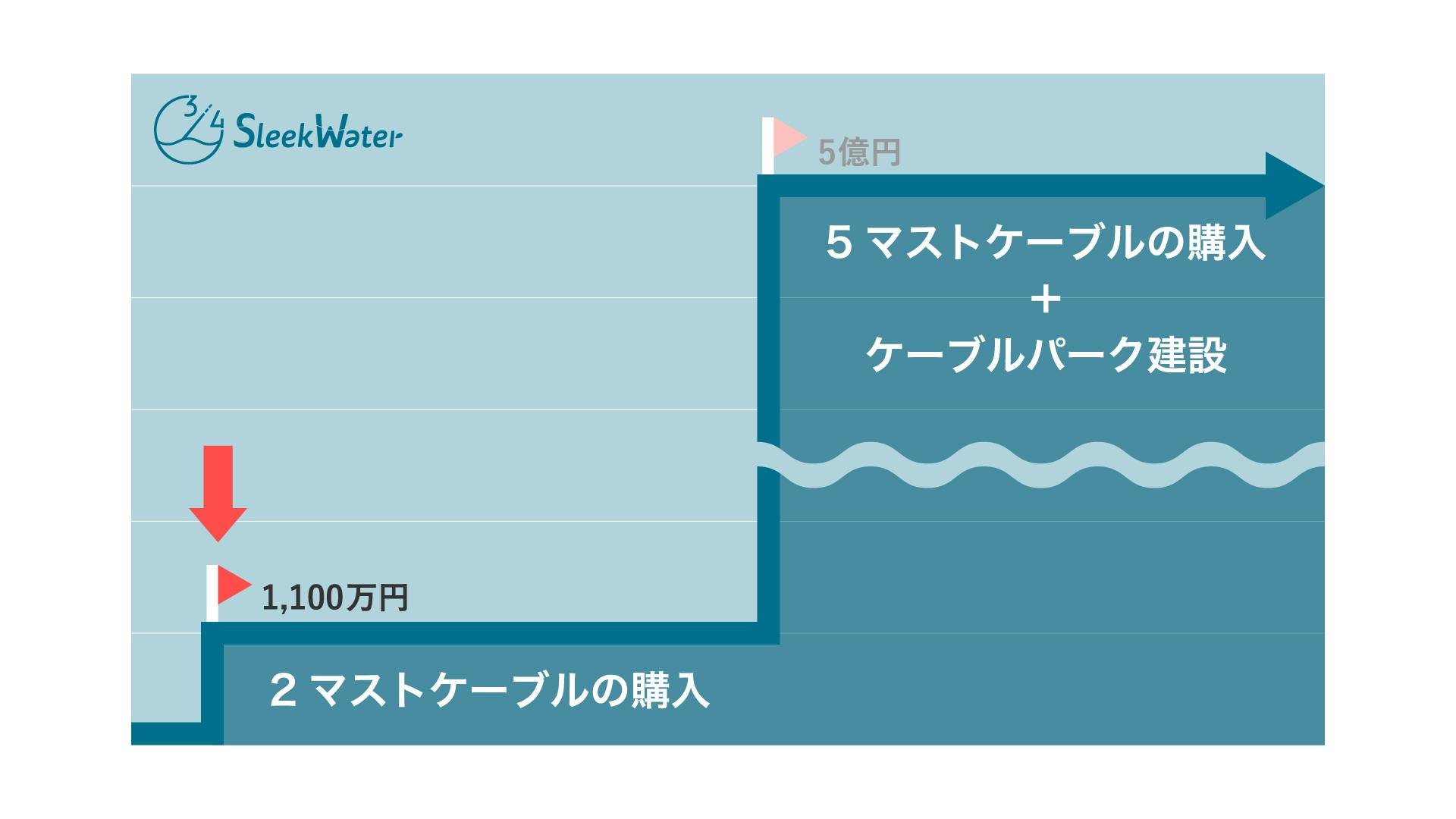 持ち運び可能な2マストのケーブルシステムを購入することを目標としており、その購入にかかる金額が約1,100万円です。