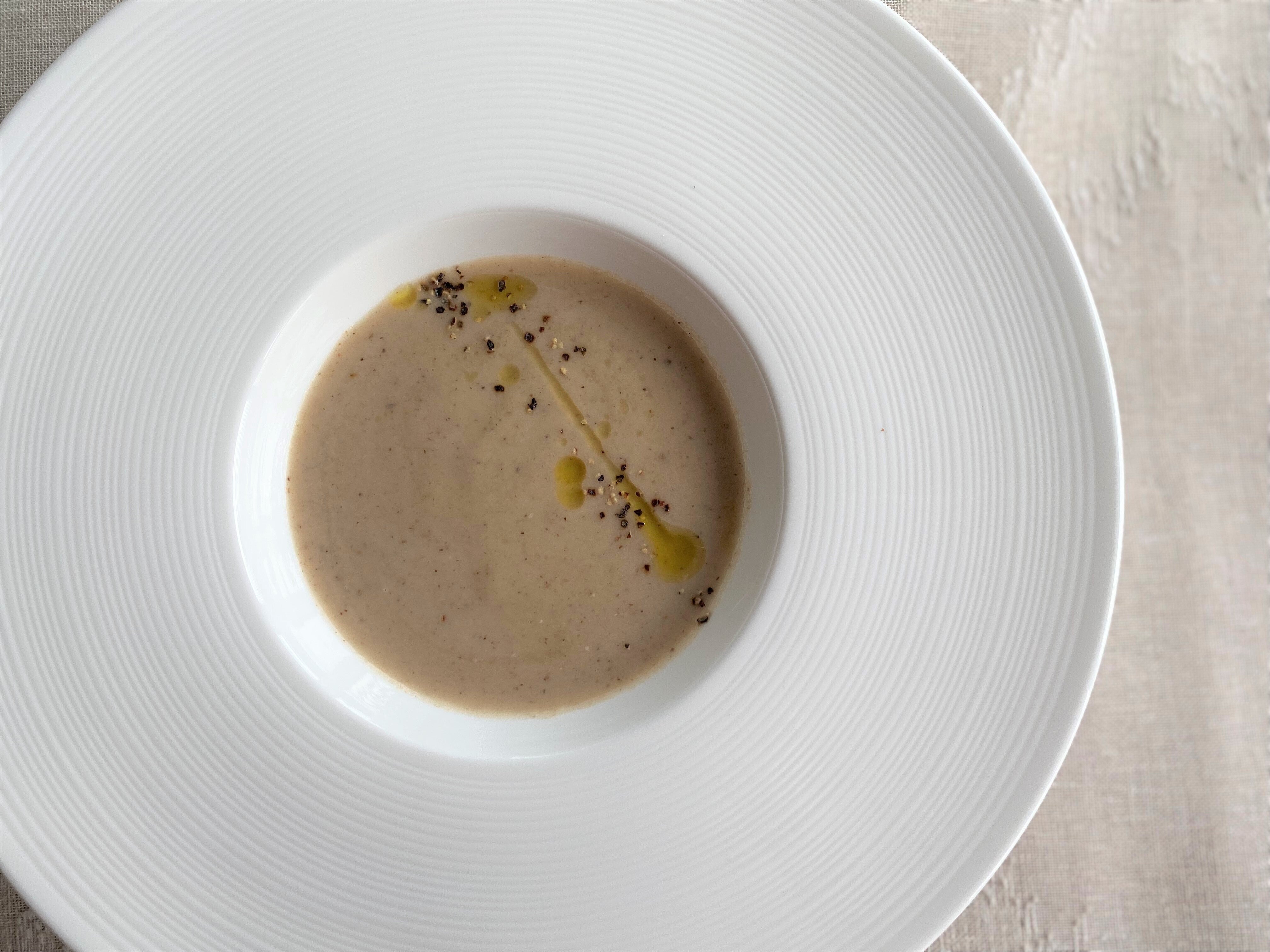 搾った後のもろみで作った「干し椎茸ともろみのポタージュ」