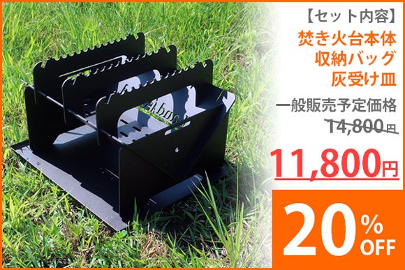 2021/11/19 12:30厚み3mmの重厚な鉄板を使用した、頑丈な焚き火台です。 丈夫な為、熱で歪みにくく、まさに一生物の焚き火台となってくれる事でしょう。 ブランドロゴは職人が一つ一つ削り出しを行っており、こぼれる火のぬくもりが癒しを与えてくれます。コンパクトサイズながら、ソロキャンプ、ファミリーまで幅広く対応可能です。前回のプロジェクトとして起案いたしましたワンタッチ避難用テント、キャンピングスイングチェアは目標を大幅に達成いたしましたので、今回も皆さまにご愛用いただけるような製品を起案させていただきました。この機会に私たちを少しでも多くの方に知っていただき、ご家族やご友人、大切な人々と、アウトドアレジャーを楽しんでいただく、快適で便利なアウトドアライフを過ごしていただける一助となることが、私たちのビジョンです。皆様のご支援をどうぞよろしくお願いいたします。 もっと見る
