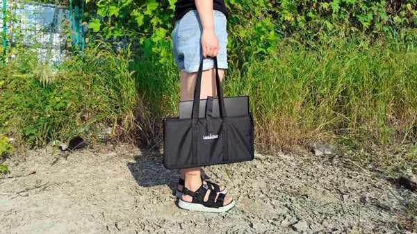 焚き火台をすっぽり収納できる専用バッグ付き。