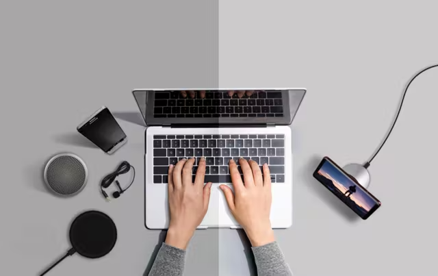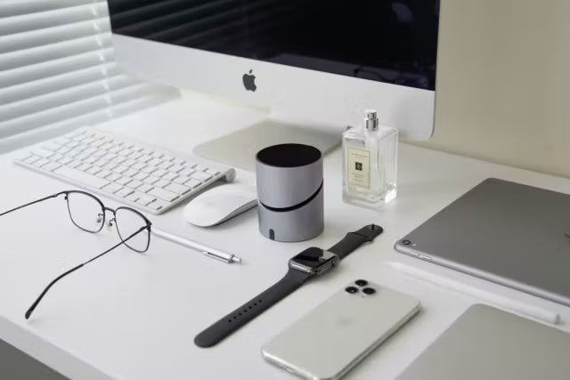 ケースの色は、スペースグレイ (Space Gray) カラーでApple製品とよく合い、落ち着いた感じでテーブル上のインテリアと調和します。