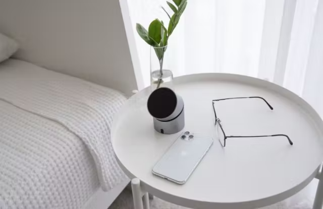 夜間にスマートフォンが充電器の充電パッドに近づくと、充電可能な状態を知らせる青ランプがつき、スマートフォンをセットする際にセットしやすくなっています。
