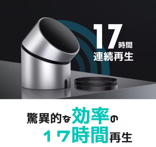 500mAhの大容量のバッテリーで最長17時間の連続再生が可能です。1~3泊程度の旅行でも充電が必要ない高効率のBluetoothスピーカーです。 ※一般的な音楽鑑賞のための40%台の音量を基準にしています。