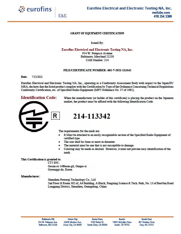 EUのCE認証、アメリカのFCC認証を取得しており、信頼してお使いいただけます。