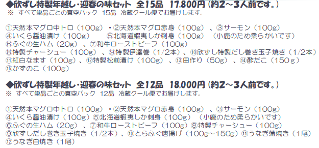 いつもの年は、年末に茅ケ崎の欣ずしまでお越しいただいてお渡ししていましたが、コロナ禍の影響で、今年は、店舗にお越しいただかずに、クール冷蔵便(一部冷凍便)でお届けさせていただきます。