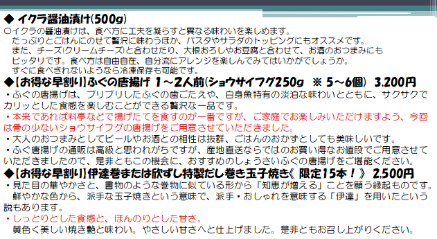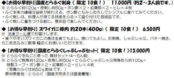 今回は、毎年 年末に販売しております、自慢の海鮮、「おせち料理」、「オードブル」、「ふぐ・かに鍋」等を自宅で楽しんでいただけるよう、プロジェクト第3弾を立ち上げました。