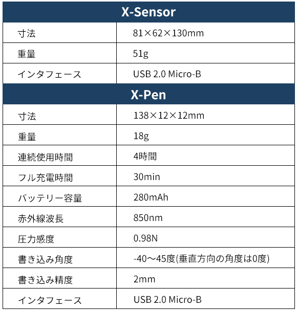 X-Sensorに設置された専用カメラを利用して、X-Penからの赤外線を瞬時に受信。受信したデータをパソコンに転送し、120FPS高速なデータ処理を実現します。