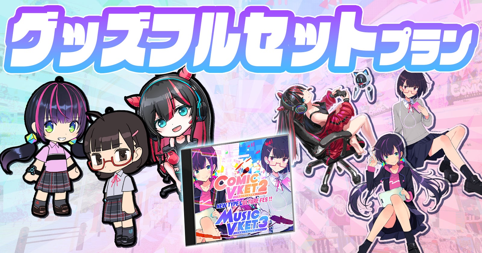 2021/11/12 10:29 This article provides English translation of the main page. You’ll need a credit card with foreign transaction service to send support internationally. Please note that some returns are limited to people residing in Japan. This crowdfunding is to support the creation of 3D models for the three "Vket Girls" of ComicVket, MusicVket, and GameVket, events in the virtual space. We will try to create attractive avatars that you can use freely! Furthermore, the avatars will be used for promotion and PR activities!Virtual Market holds various exhibition events in the virtual space.Vket Girls are the characters actively promoting the attractions of each event of Virtual Market.Currently they are broadcasting attractions and information about their events mainly through Twitter, working energetically.ComicVket official TwitterMusicVket official TwitterGameVket official TwitterThe objective is to create 3D avatars of "ComicVket-Chan", "MusicVket-Chan" and "GameVket-Chan", each in charge of comic convention event "ComicVket", indie music event "MusicVket", and indie game event "GameVket", the derivative events of Virtual Market focused on sub-culture.With 3D avatar creations, they will be able to engage in promotion activities inside virtual event venues and actually "meet" visitors in the virtual space, enriching their delivery of attractive information to people.Also, the produced 3D avatar will become freely available. Everyone will be able to download and use the avatars.We hope their avatars may be cherished by you as a medium of yourselves expressing your fondness for comics, music, and games.The planned schedule is that, once the crowdfunding is finished, we will send a formal request to the avatar developer, and expect to publicize the avatar in around 4 to 5 months.Target amount and stretch goalsThe target amount of this project is "the cost of making a 3D avatar of one character."Excluding the commissions, all support amounts will be paid to the avatar creator as the fee!As the stretch goals, the second character will be made into a 3D avatar when the total committed amount reaches JPY 2 million and the third when the total amount reaches JPY 3 million.The order of 3D avatar making will be determined based on the number of supports for the correspondent plans.ComicVket-ChanFull of energy and lively! An active girl who loves doujin comics, often found struggling to meet deadlines for the multiple events she is in.She buys and writes a lot of doujin, and also eats and plays well!Optimistic and a bit rough. She'll hit the street and run around, hunting for her favorite comics and doujins.MusicVket-ChanShe's calm and reliable! But when it comes to music, she has a passion for it in her heart.While she cherishes her own liking, she is also stoic and not fussy about other people's preferences.Once she starts talking about her favorite music, she just can't stop.GameVket-ChanShe usually looks a bit absent-minded but will turn vivacious and lively once she gets her hands on the controller.A bit lazy in her personal life, she prioritizes spendings on games and related gadgets!She is surprisingly affable to her brother.JPY 2,000◆Digital soundtrack* The soundtrack includes music data and jacket imageof ComicVket2 and MusicVket2 venues.* The plan does not include advance avatar download rights.Planned Planned delivery schedule: April, 2022JPY3,000◆The supporters' names will be displayed on the avatar download page.◆You will have access to advance download of the avatars.* Please write the name to be displayed on the download page on the Note when sending the support. The Note window should only contain the display name and no other information.Planned delivery schedule: March, 2022JPY5,000◆One vote is cast to ComicVket-chan’s avatar◆The supporters' names will be displayed on the avatar download page.◆You will have access to advance download of the avatars.* Please write the name to be displayed on the download page on the Note when sending the support. The Note window should only contain the display name and no other information.Planned delivery schedule: March, 2022JPY5,000◆One vote is cast to MusicVket-chan’s avatar◆The supporters' names will be displayed on the avatar download page.◆You will have access to advance download of the avatars.* Please write the name to be displayed on the download page on the Note when sending the support. The Note window should only contain the display name and no other information.Planned delivery schedule: March, 2022JPY5,000◆One vote is cast to GameVket-chan’s avatar◆The supporters' names will be displayed on the avatar download page.◆You will have access to advance download of the avatars.* Please write the name to be displayed on the download page on the Note when sending the support. The Note window should only contain the display name and no other information.Planned delivery schedule: March, 2022JPY5,000◆You can download additional accessories for the 3D avatars to be attached.◆The supporters' names will be displayed on the avatar download page.◆You will have access to advance download of the avatars.* Please write the name to be displayed on the download page on the Note when sending the support. The Note window should only contain the display name and no other information.* Even when not all characters are made into avatars, you’ll be able to download accessories for all three.Planned delivery schedule: March, 2022JPY8,000◆You can download additional costume-like clothes tailored for each character.◆The supporters' names will be displayed on the avatar download page.◆You will have access to advance download of the avatars.* Please write the name to be displayed on the download page on the Note when sending the support. The Note window should only contain the display name and no other information.Planned delivery schedule: April, 2022JPY10,000◆The supporters' names will be displayed on the avatar